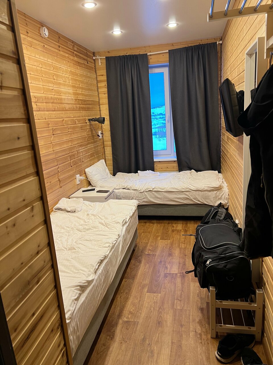 Ребята, гостиница просто супер! Нас очень радушно встретили на ресепшене, всё рассказали по размещению. По расположению для нас идеально: в пешей доступности пляж и водопады, ресторан Гребешки, в часе ходьбы старая часть Териберки. Гостиница очень чистая, есть всё необходимое для проживания. Также хочу отметить, что сделано всё со вкусом: минималистично и красиво. На первом этаже кухня, на каждом из этажей проживания душевые и туалеты (очередей не было). Кровати такие удобные , что ложишься и моментально засыпаешь. В номере есть телевизор, работает хорошо. Одноразовые тапочки выдают по запросу. В душевых есть полотенца и жидкое мыло. Жили в стандартном номере над кухней, запахов вроде не было. Сторонних шумов с улицы и от соседей не было. Фото гостиницы соответсвует реальности. Однозначно рекомендую здесь остановиться!