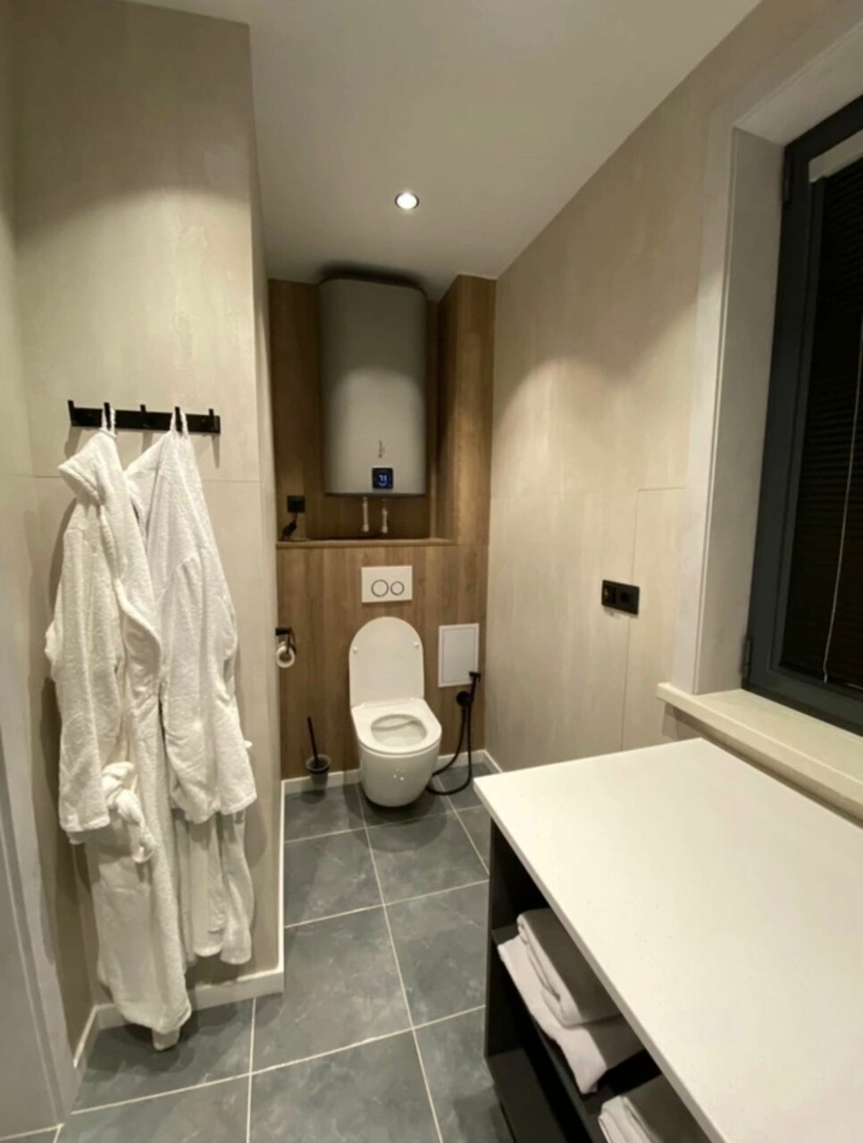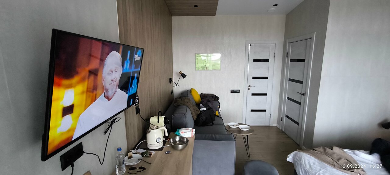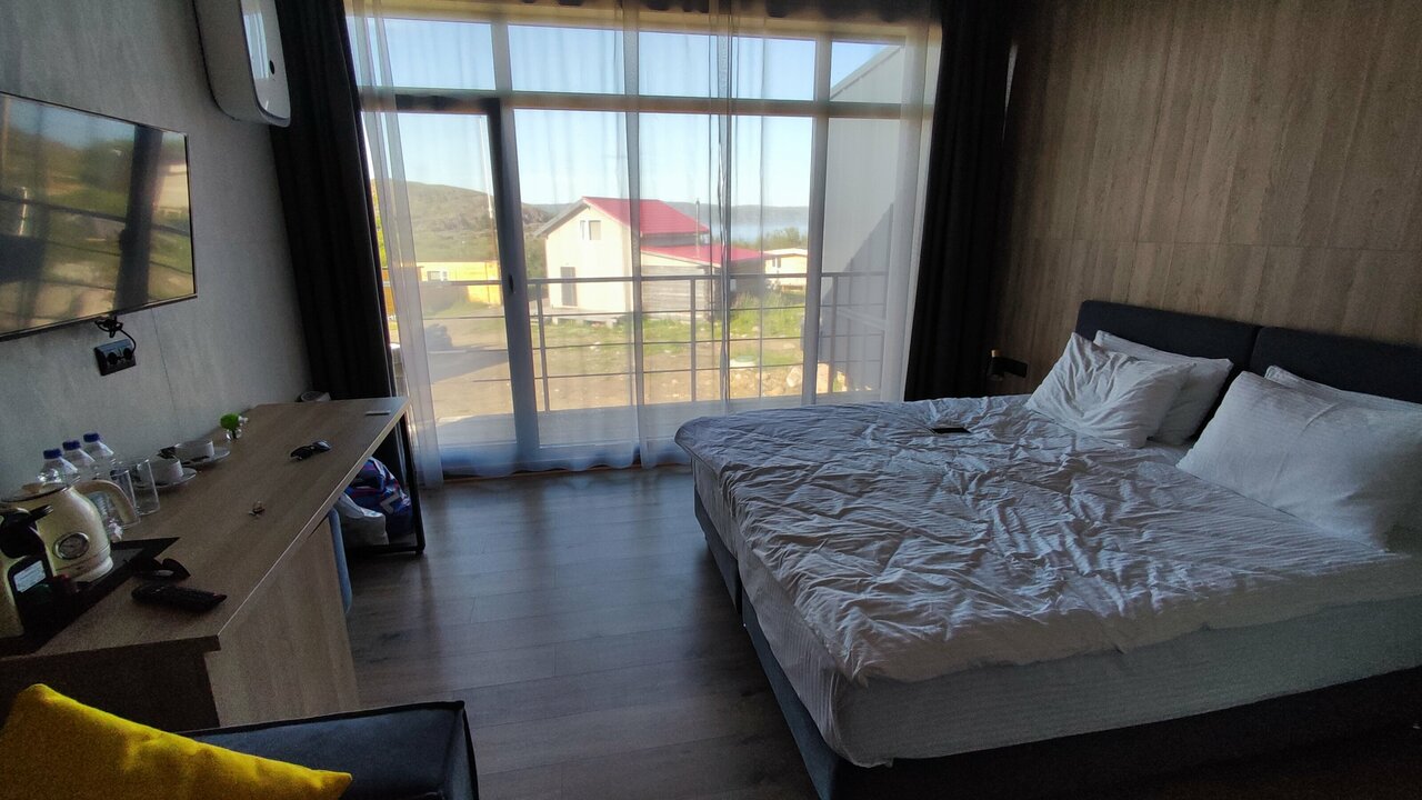 Место хорошее. Остановились в номере комфорт: стильный интерьер, теплые полы, чистота, приятный персонал, есть в целом все необходимые мелочи вроде сушилки для промокшей обуви и фена, тапочек одноразовых. Единственное, не хватило места, где можно сушить одежду — в номере нет батареи, в ванной нет сушилки — за это минус. На территории потрясающее заведение Моle, в 2х минутах живописная бухта. Мы остались довольны