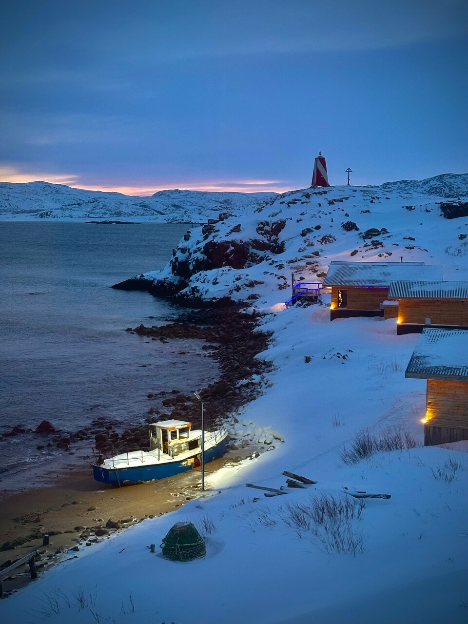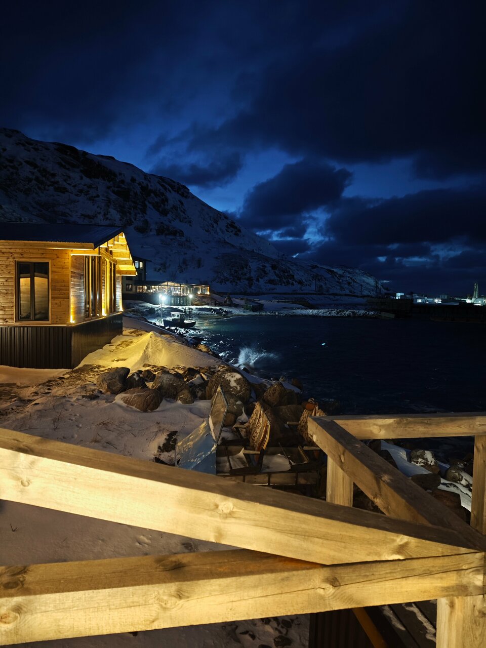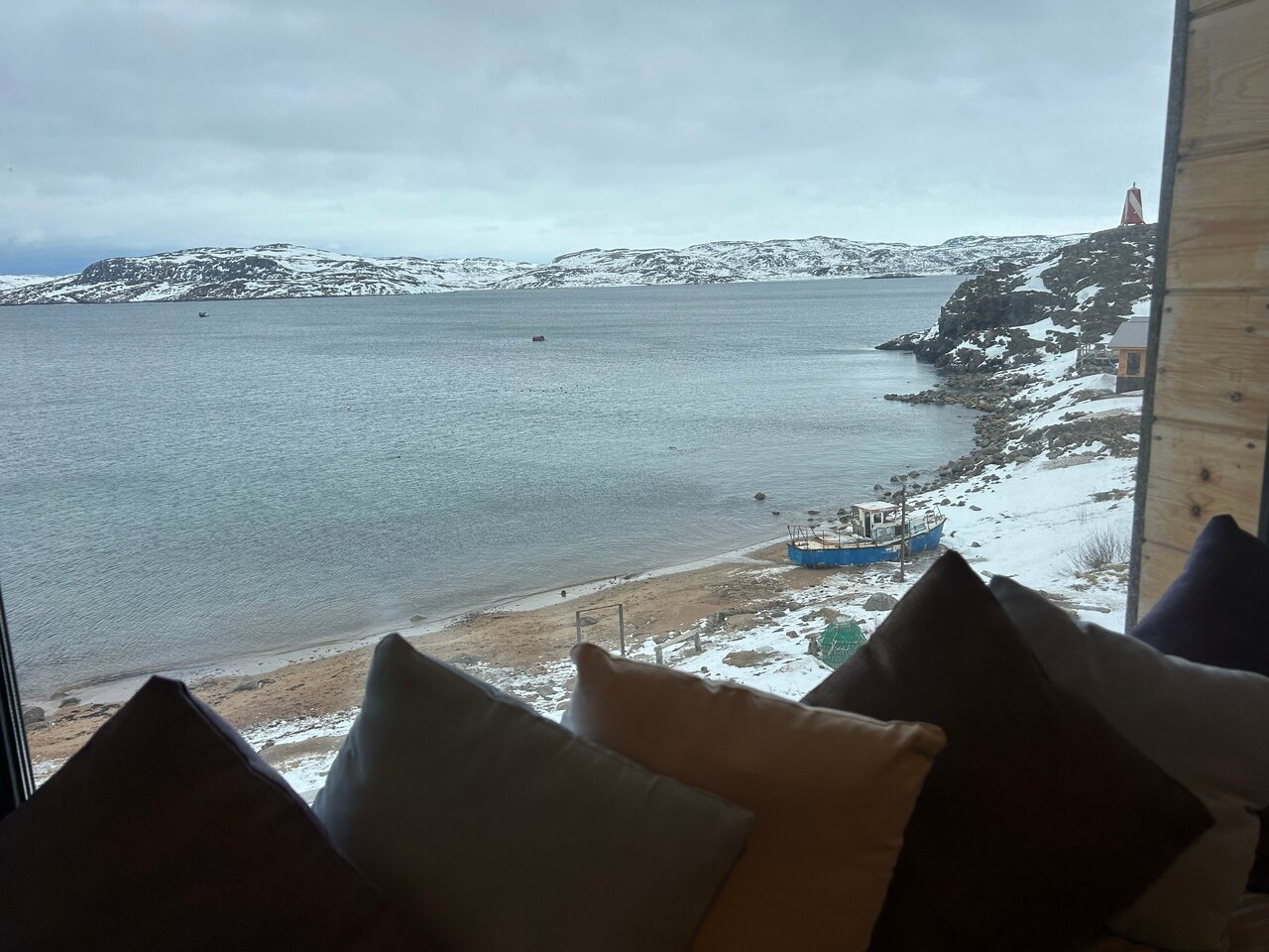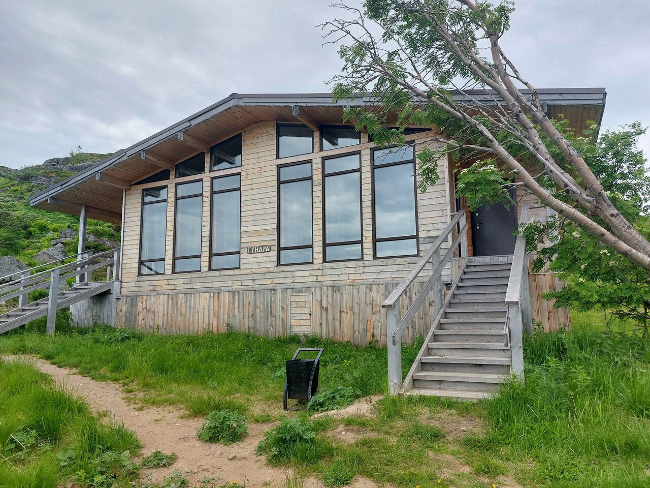 Хороший отель. Наверное один из самых дорогих в териберке, но высокого класса.отличные завтраки. Прям очень разнообразно. Отличная кухня. Действительно стоит своей высокой цены. Все блюда интересные. Номера неплохие. Брали домик с видом на море. Домик состоит из двух номеров.подьехать прямо к домику на машине нельзя. Дорожки не оборудованы, так что в скользкую погоду будет не удобно. Но сами номера хорошие. Вид из них открывается на бухту и рыбзавод. В бухту иногда заплывают морские котики. Можно дойти пешком до обеих териберок, но лучше поехать на машине, особенно если потом ещё гулять до водопада или ещё куда-то.