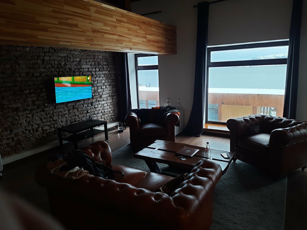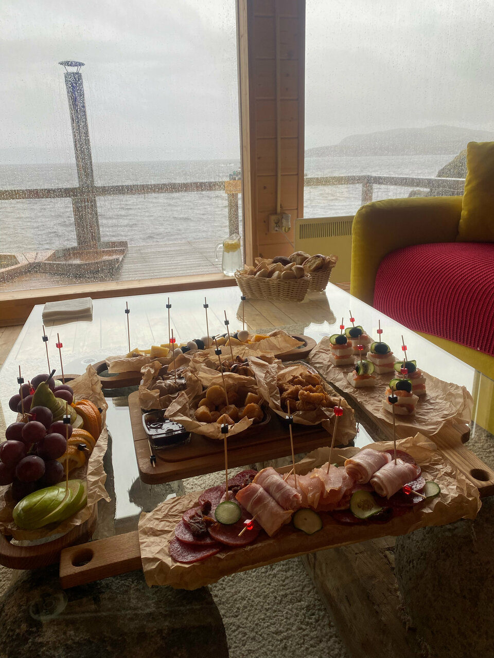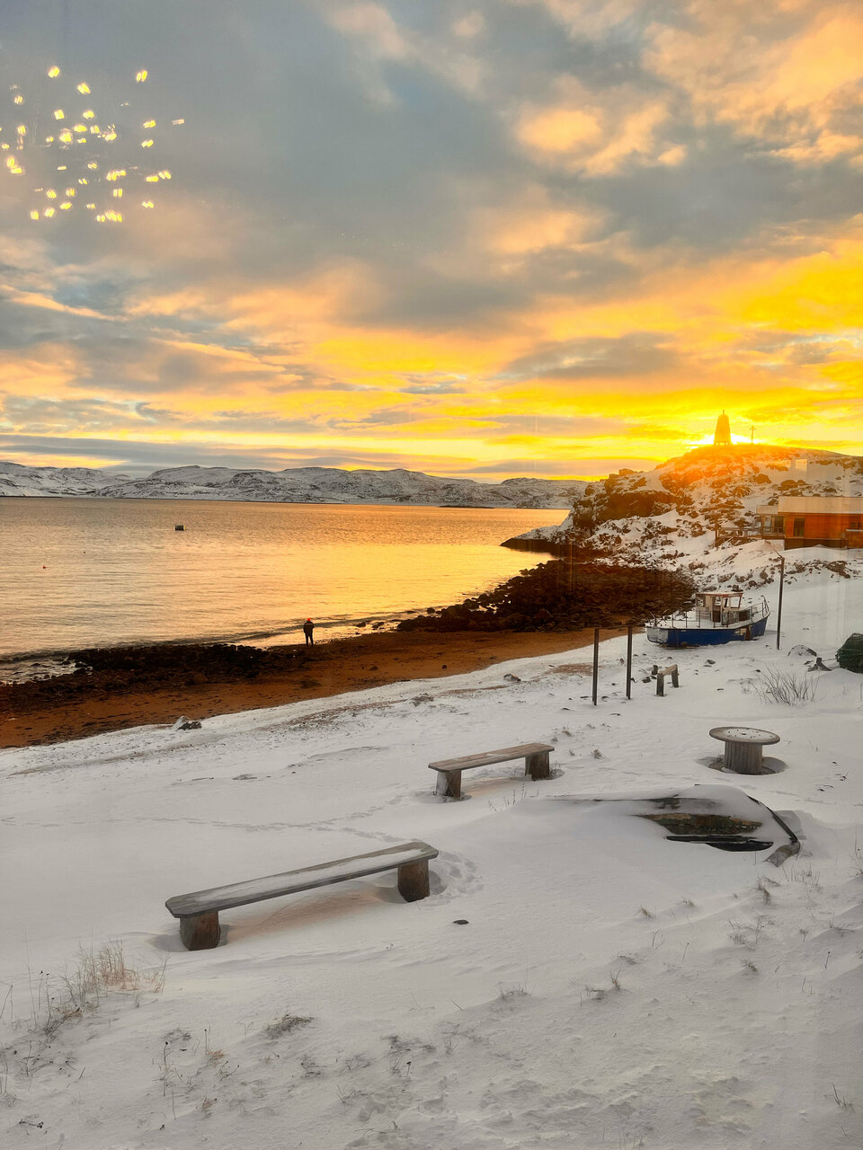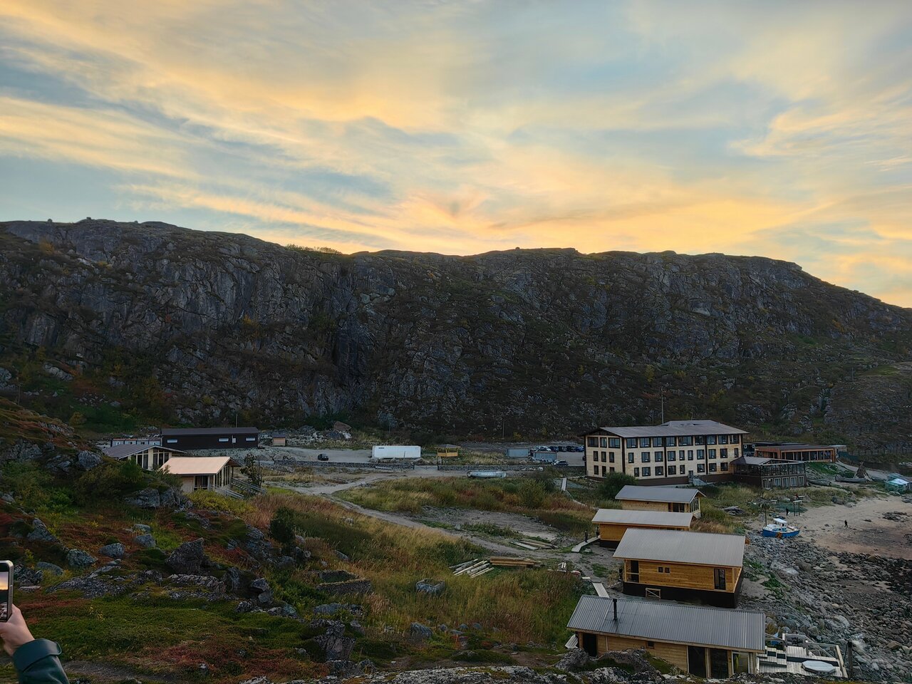 Хороший отель. Наверное один из самых дорогих в териберке, но высокого класса.отличные завтраки. Прям очень разнообразно. Отличная кухня. Действительно стоит своей высокой цены. Все блюда интересные. Номера неплохие. Брали домик с видом на море. Домик состоит из двух номеров.подьехать прямо к домику на машине нельзя. Дорожки не оборудованы, так что в скользкую погоду будет не удобно. Но сами номера хорошие. Вид из них открывается на бухту и рыбзавод. В бухту иногда заплывают морские котики. Можно дойти пешком до обеих териберок, но лучше поехать на машине, особенно если потом ещё гулять до водопада или ещё куда-то.