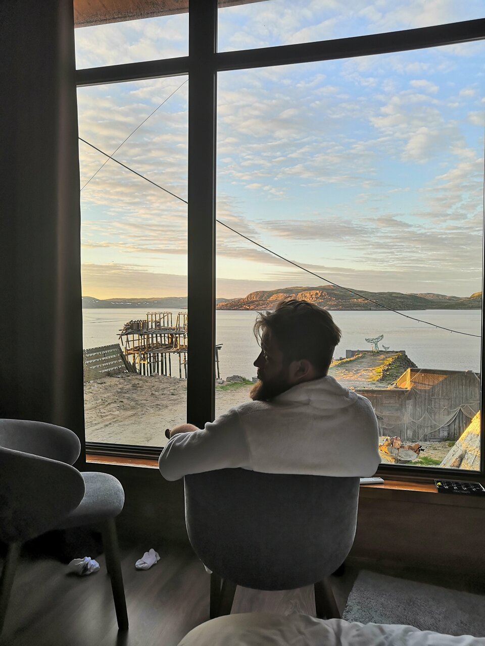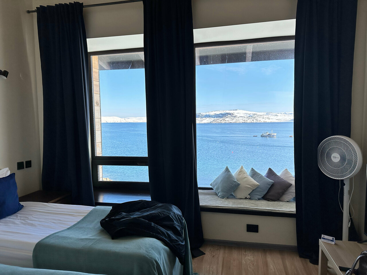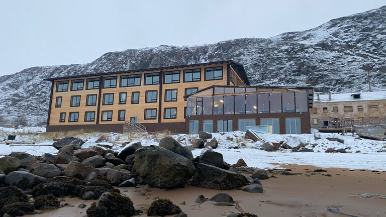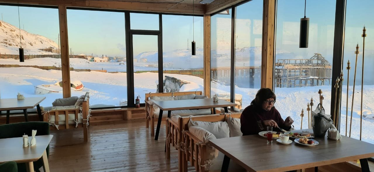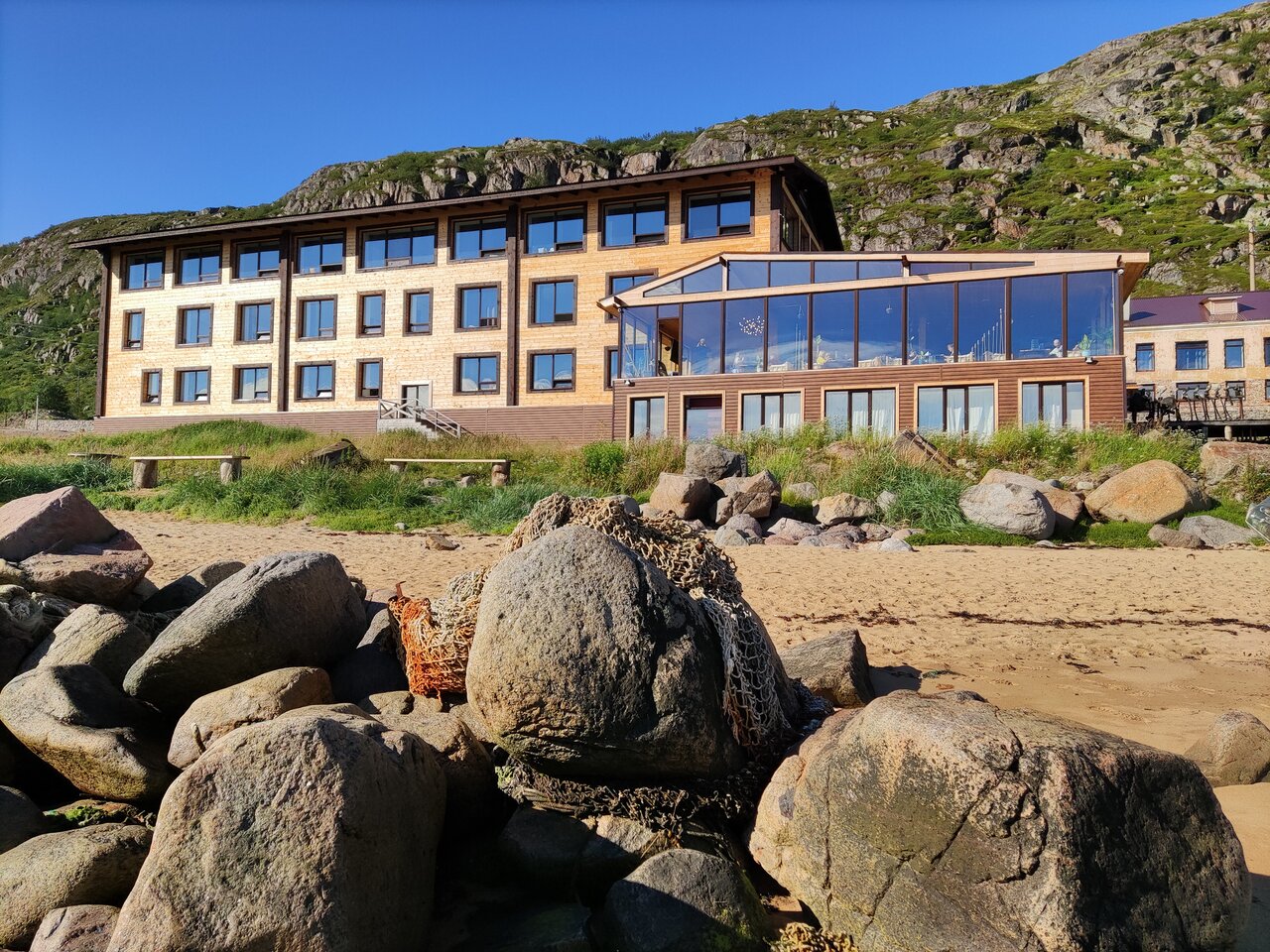 Отличное место с шикарным видом на Баренцево море. В пристройке находится очень приличный ресторан со всеми местными гастрономическими изысками. Помимо этого в лобби есть приятное место для отдыха с видом на море оформленное интересными экспонатами по теме местной флоры и фауны.