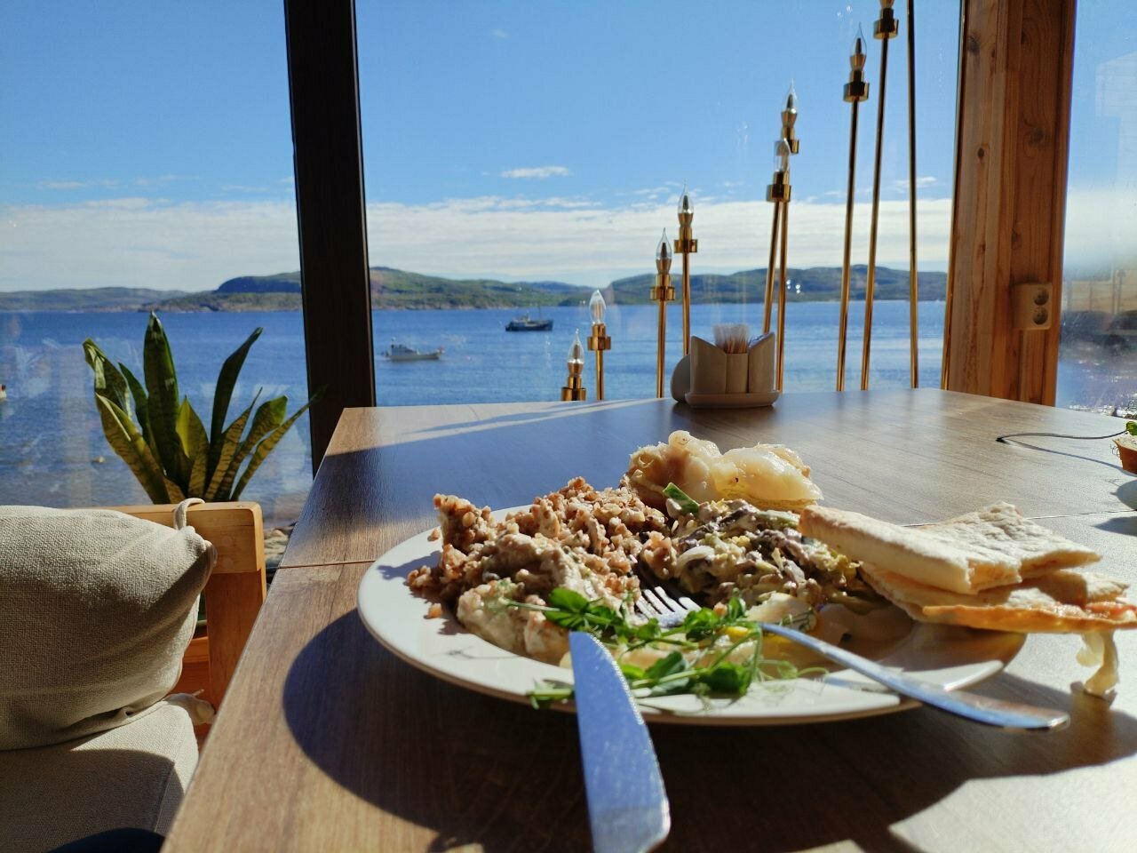 Крутое расположение, классное меню, официанты просто пушка, у ребят есть отель, но мест почти всегда нет, бронируйте заранее. Очень красивый вид, приятная музыка. Обслуживание из всех ресторанов что есть в Териберке самое адекватное хочется возвращаться сюда снова и снова.