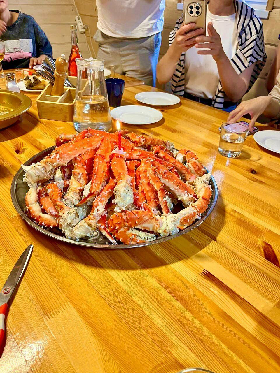 В ‘Ковчеге’ я провела незабываемые дни с 7 по 10 сентября 2023 года, а также отмечала свой день рождение. Остановилась в одной из уютных домиков, в котором есть всё необходимое для комфортного проживания путника, включая сушилку для обуви и что не мало важно для девушек — мощный фен. Вид из окна был просто потрясающим! Хозяева ‘Ковчега’ дружелюбны и всегда готовы помочь. Приветственный обед, а также завтраки были вкусными и разнообразными. Ужин с морскими деликатесами выше всех похвал: мы ели свежевыловленных ежей, гребешков и крабов. Из последних был сооружён импровизированный торт в честь именинников (см фото). Охоту за северным сиянием можно было проводить буквально из окна Ковчега, но каждую ночь команду полуночных энтузиастов вывозили на открытое пространство чтобы увидеть-таки сияние во всей красе. Все треккинги прошли в мягкой, не утруждающих путников темпе. Я бы с удовольствием вернулась туда еще раз и рекомендую это место всем, кто хочет открыть для себя красоту Заполярья.