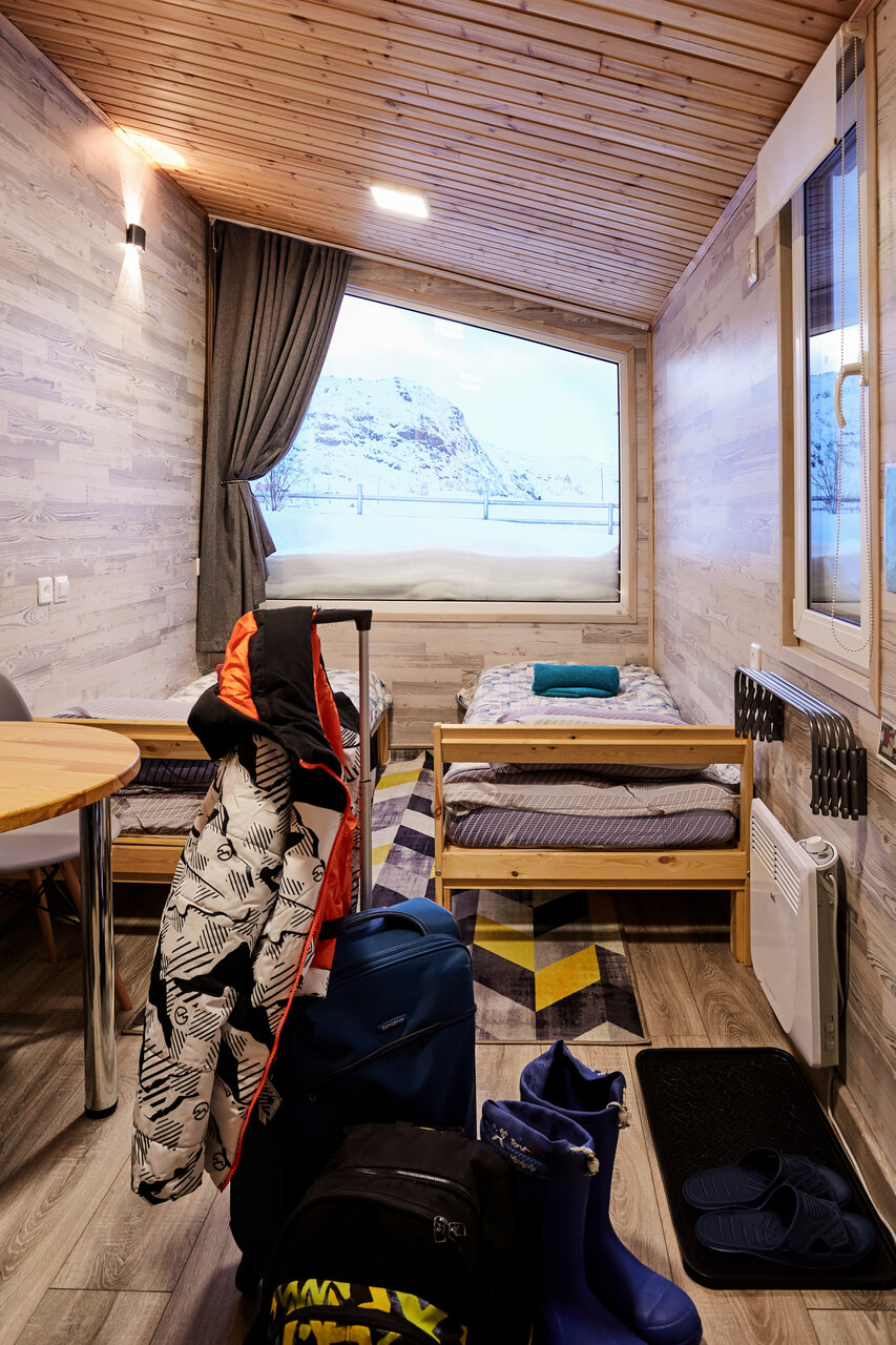 Были в домиках! Очень понравилось! Вид из номера, в номерах есть обогреватели, сушилки для обуви и одежды. Очень приятные хозяева, общительные! По их рекомендации забронировали лодку, прекрасная поездка выдалась, китов увидели, хозяева пошли нам на встречу и оставили за нами номер до вечера, приготовили прекрасного краба к нужному нам времени! Не нахожу никаких минусов! Спасибо большое!!!