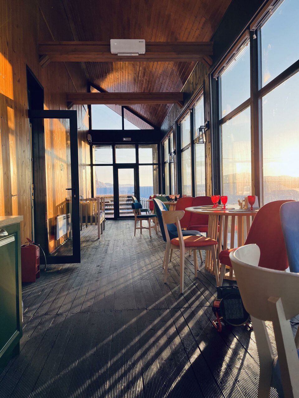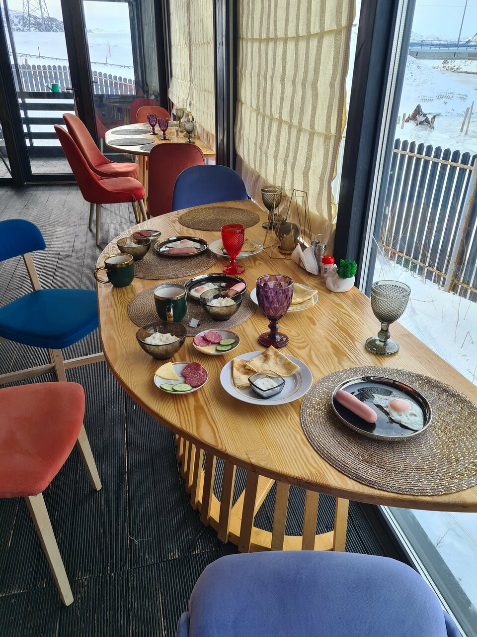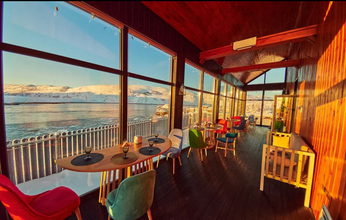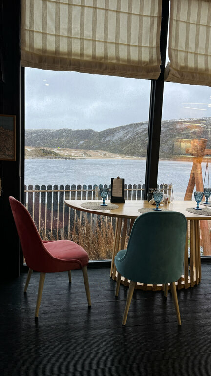 Наверное во всей Териберке — это лучшее место. Отличный вид, в номерах всё новое. Что огорчило -так это уборка. Мусор даже не забирали 3 дня. Под кроватями грязно. Я это посмотрела, потому что мы заехали с ребёнком, который везде лезет. И поменяла бы завтрак на шведский стол, а не на раздачу всем по очереди одного и того же. Но это просто рекомендация, а так завтрак хороший. Можно заказать еду не только на завтрак, можно сдать вещи в стирку. С любым вопросом можно обращаться к персоналу. Настя просто булочка, очень милая администратор. До пляжа, где около ресторана лежит скелет кита — 5 минут пешком. Ещё вернёмся, я думаю