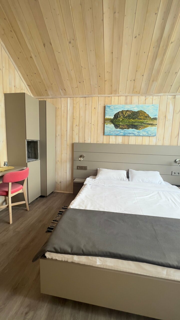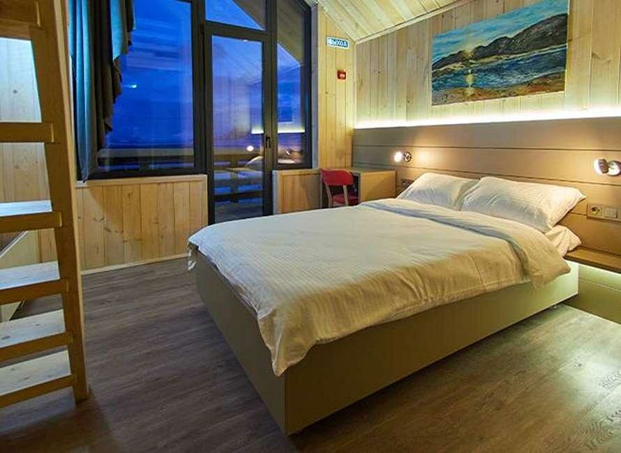 Клиентоориентированность 100 из 10 такой заботы от персонала мы еще никогда не встречали, и накормят, и согреют, и тапочки дадут, и завтрак соберут, если вы рано уезжаете, и поинтересуются как вы провели свой день. Завтраки потрясающие, очень вкусно и сытно, ресторан очень стильный, уютный, с красивым видом. Сам номер чистый, теплый, уютный, все современное, есть все необходимые гигиенические принадлежности, халаты. В номере тихо, соседей или какого-то шума с улицы не слышно было. Вид из окна на реку и море, обзор на север, что для любителей искать северное сияние- идеально. И что еще очень понравилось — это то, что вы всегда и бесплатно можете воспользоваться кофе машиной или налить горячего чая с лимоном, после прогулки прям то, что надо.