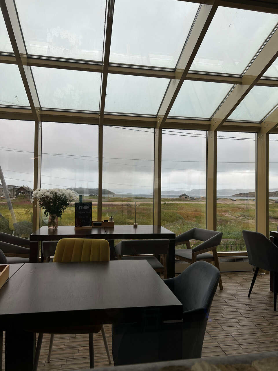 Топовые завтраки и обеды. Лучше, чем в ряде других мест Териберки. Вид из окна на веранде — огонь!