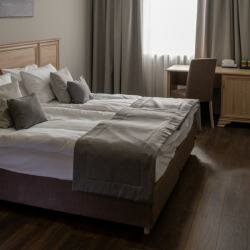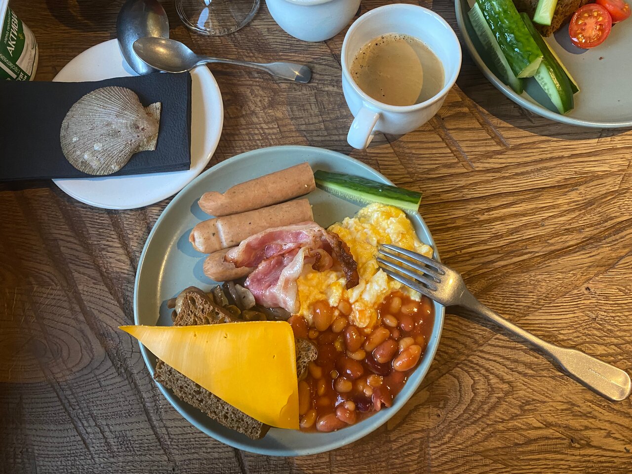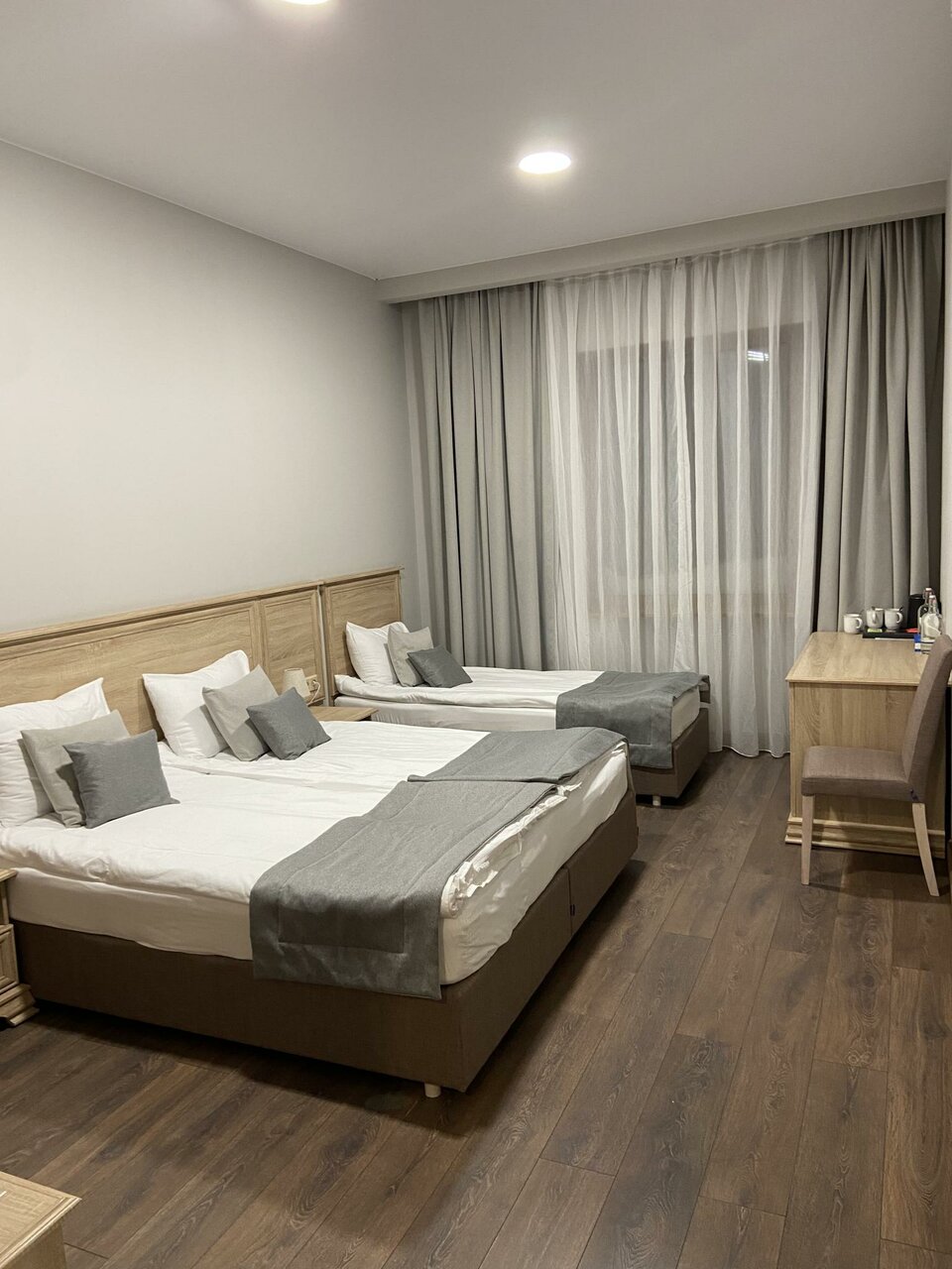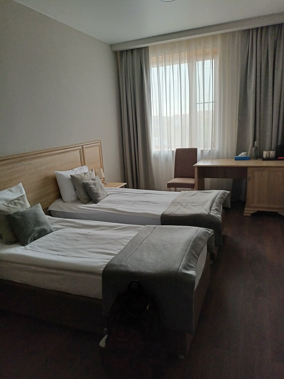 Поселили на 1 этаже в номере прям у входа на ресепшене, ну не то чтобы дискомфортно, но обычно архитекторы избегают таких планировочных решений, не ощущаешь приватности. Ванная комфортная, а вот кровать ужас — всю ночь невозможно было спать, в постельном белье кто-то щипался и кусался. Мы очень испугались что это были клопы администратор ничего не сказала нам в ответ. Баллы только за кухню ресторана, действительно невероятно вкусно прийти на обед и ужин. На завтрак надо вставать рано, чтобы в лучших традициях русского человека отхапать все. Ничего не докладывают из еды, если вы пришли позже других. За такую стоимость жилья — ну можно постараться в базовых потребностях
