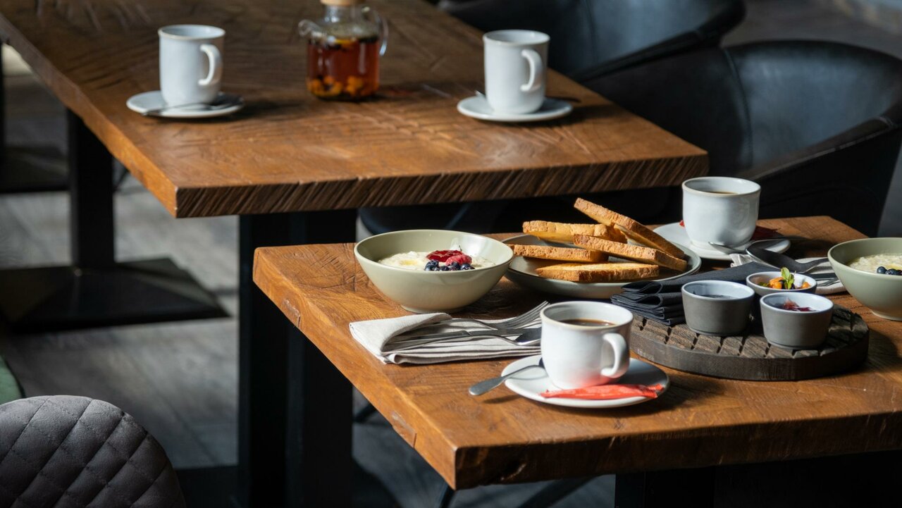 - Прекрасный ресторан при отеле (вкусно, стильный интерьер).; Хорошие завтраки (соки, чай, кофемашина).; Радушный приём.; Вежливый, отзывчивый и профессиональный персонал.; Полноценный хороший завтрак.