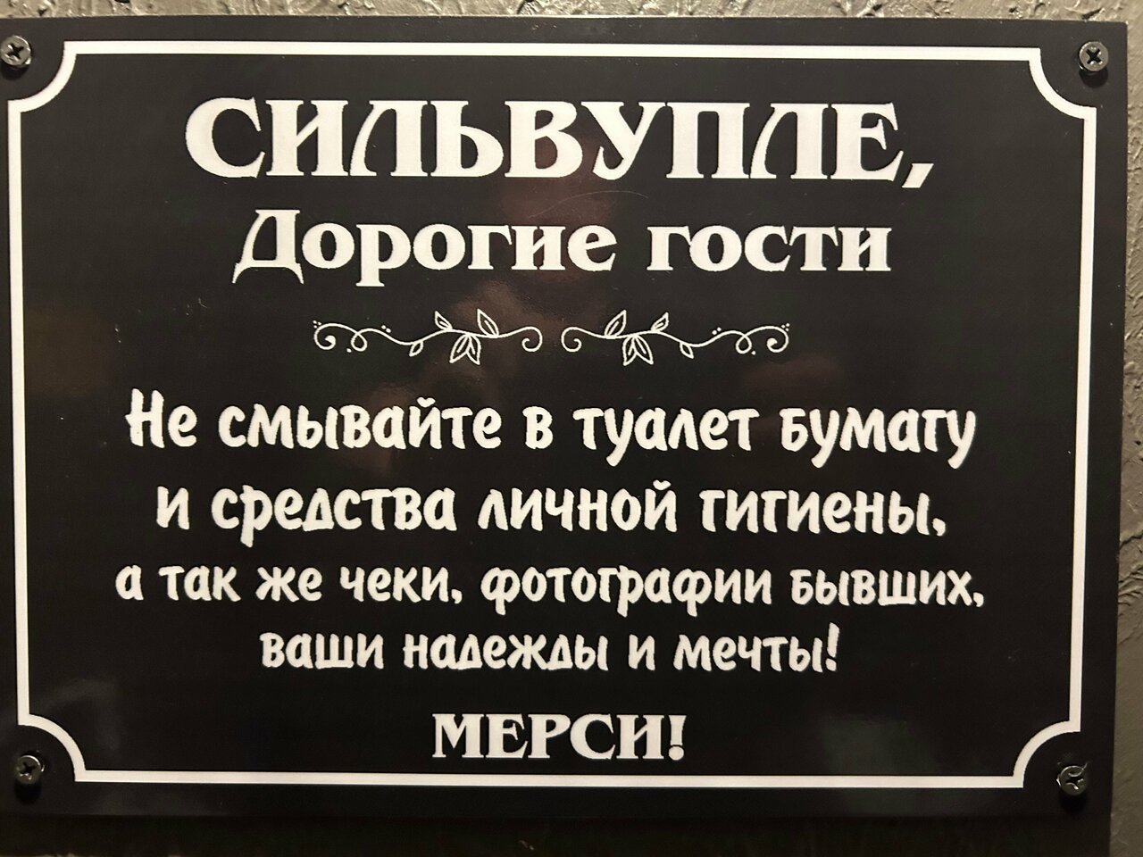 Отзыв про ресторан На входе грозная табличка на полтора листа А4 по поводу того, что пользоваться туалетом не посетителям нельзя. Ну, совсем нельзя. Никак нельзя. Вот разъяснение всех федеральных законов по теме не по теме. А внизу — зеленым маркером, что туалетов вообще нет. Сначала даже думали не заходить, как руки — то мыть? Внутри, перед дверью в туалет снова дублируются предупреждения и красивая табличка место для размышлений только для посетителей. Что по подаче, ждём уже пятьдесят минут, надеемся, будет вкусно. Нестора в пиратском стиле с музыкой, которая вынесет мозг всем голодным туристам.