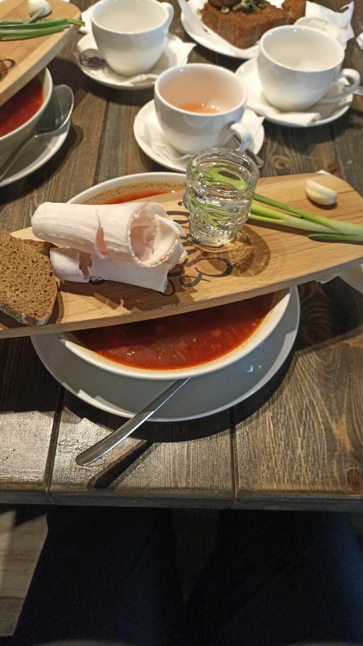 Хорошее место. Очень понравился борщ, точнее больше подача. Борщ, сало, лук , чеснок и рюмка водки ))) блюдо из трески просто бомба. Рекомендую !!! В других местах не был, но тут все понравилось.