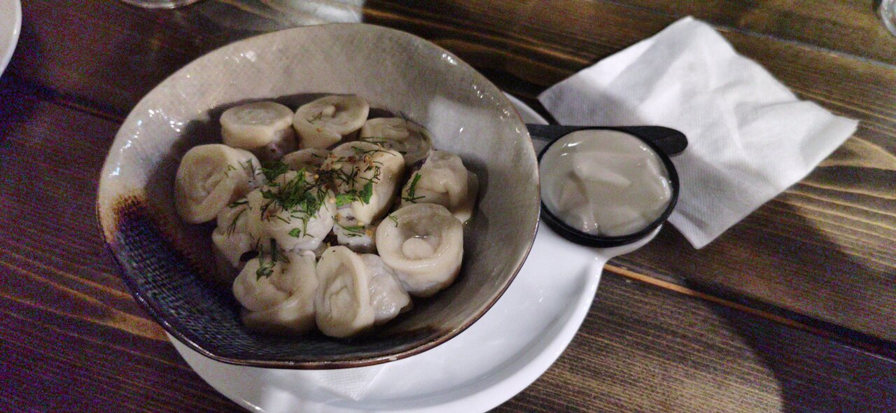 Очень вкусно! Меню не сложное, вроде бы простые блюда, но все именно с уклоном на север) Брали уху, пельмени с олениной и блинчики с лососем. Быстрое обслуживание, очень приветливая девушка.