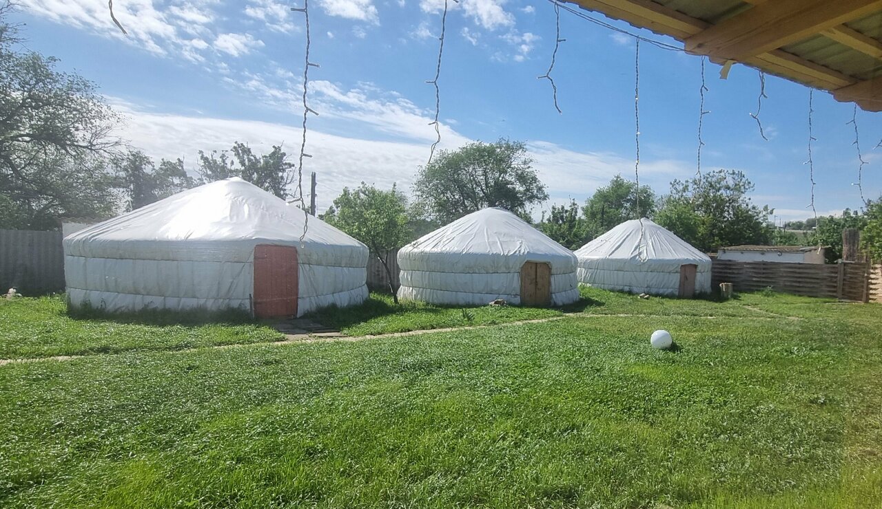 Очень грязно в домике. Грязная посуда и столовые приборы. Очень Грязный туалет!!! Грязный холодильник с забитой морозилкой продуктов. Хозяева не навязчивые. Рассказали про стрелку и поле тюльпанов, скинули ссылку как проехать, за что большое спасибо. Место тихое и спокойное. Хочу пожелать Вам процветания! И больше внимания уделяйте чистоте, это важно, я сама занимаюсь сдачей жилья. Гости элементарно имеют право на чистоту в номере! Снимали ‘Калмыцкий домик’. Во дворе с юртами зелёный газон, деревянные кресла вокруг костра, что очень прикольно и уютно вечером. Есть мангал и газовый гриль, кухня с микроволновой, холодильником, плитой и посудой, как там обстоят дела, не знаю, не пользовались.