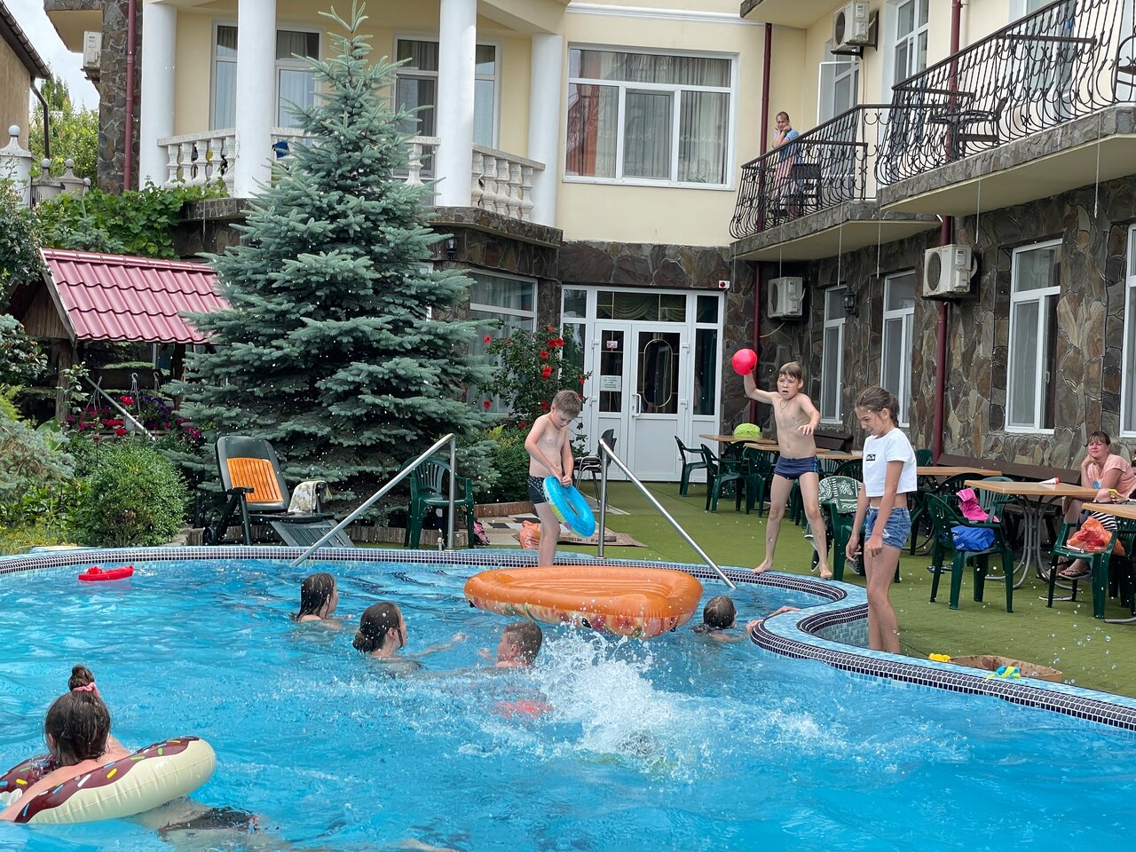 Место для отдыха с ребенком. Рекомендую. Очень по семейному душевно и спокойно. Номера чистые, питание трёхразовое, все вкусно и сытно, море рядом, вокруг персиковые сады. Вечерами тихо. В гостевом доме свой бассейн.