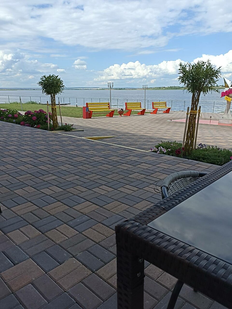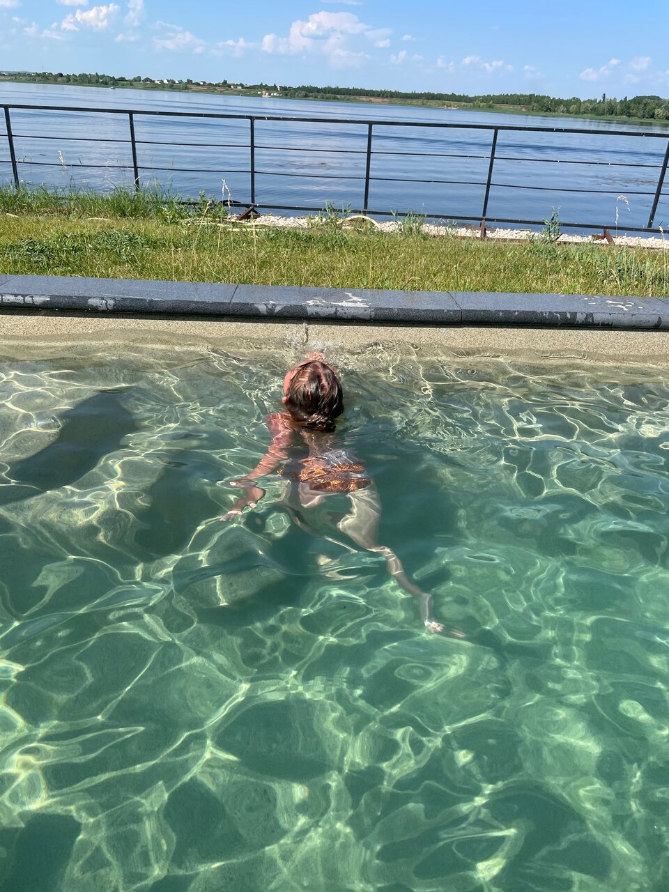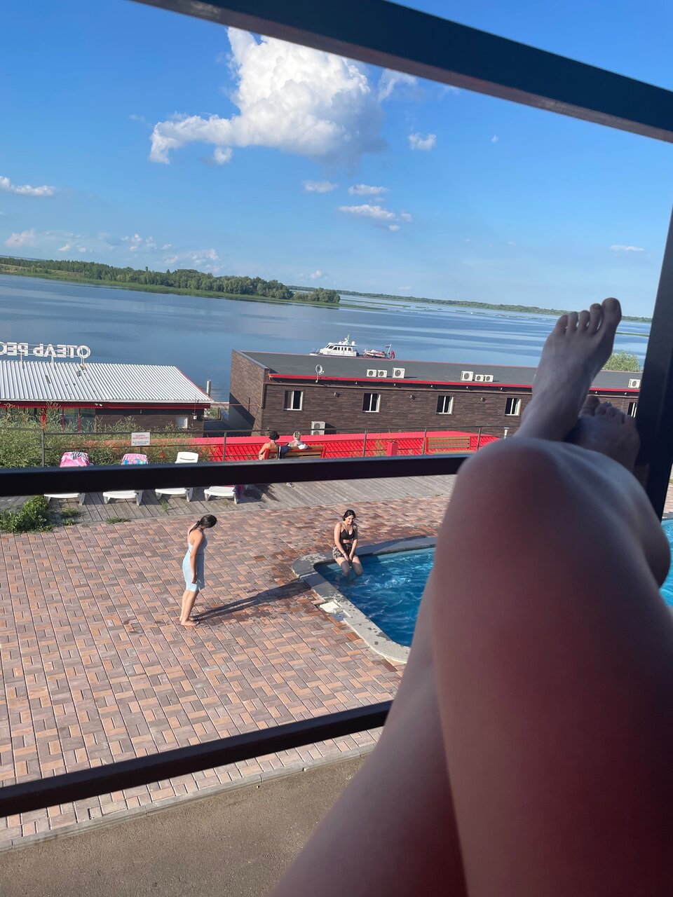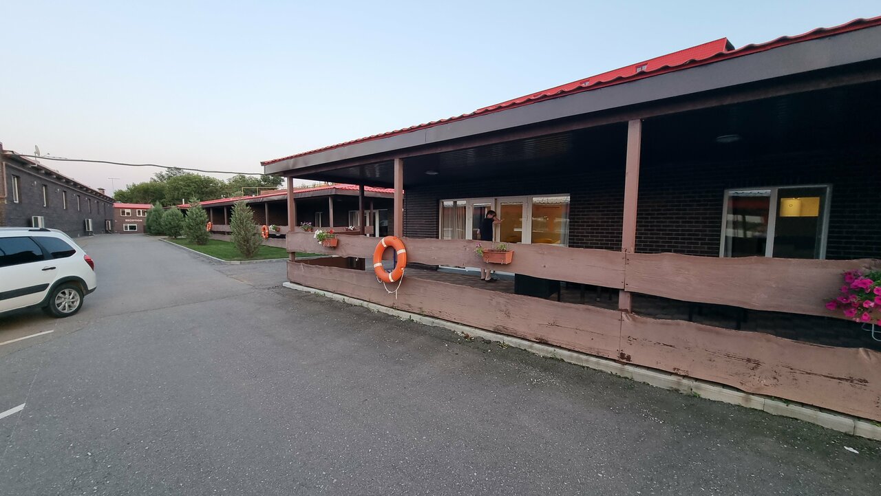 В целом место мне понравилось, но есть как плюсы, так и минусы: Плюсы — жили в основном корпусе на верхнем этаже и оттуда открывается потрясающий вид на Волгу, номер хороший со свежим ремонтом, есть холодильник и телевизор. Бассейн с лежаками и мангальной зоной. Вкусная еда в кафе. Минусы — Что бы заехать на парковку верхней территории приходится каждый раз звонить на ресепшн. Нет своего пляжа. Мало официантов в кафе, из-за этого долгое и не самое качественное обслуживание. По телефону сказали, что рядом есть спуск для водной техники, чуть ли не с асфальтом до воды, а по факту кроме как на джипе, к воде не съехать.