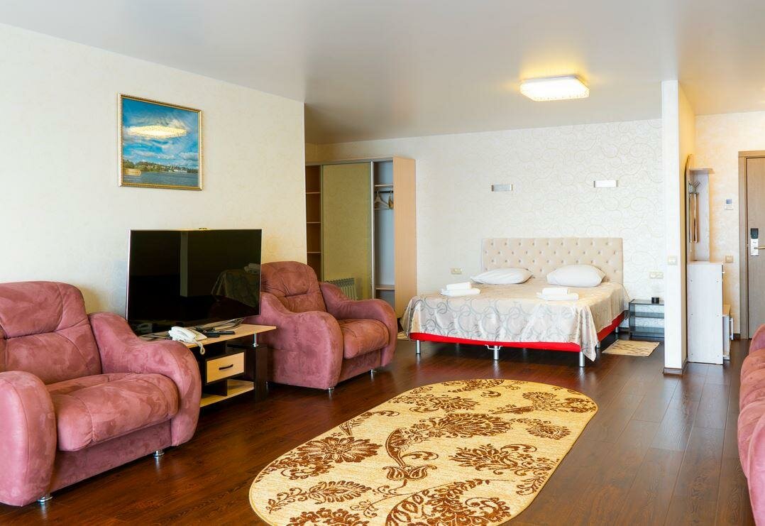 Провели 5 дней отпуска в этом чудесном месте. Большой номер полулюкс на 2ом этаже корпуса над рестораном. Чисто, уютно, отзывчивый и добродушный персонал. В ресторане вкусно нам было. И никаких морей и заграниц не надо, хотя бывали много где. До пляжа пройтись по кромке воды 3 минуты, но и с причала купались люди. Я бы хотела вернуться сюда, если получится!