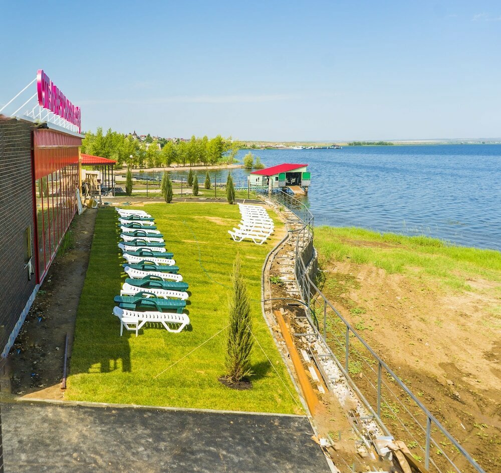 - Чистота и уют в номерах.; Потрясающий вид на Волгу.; Просторные номера с удобствами.; Бассейн с лежаками и мангальной зоной.; Удобное расположение (близко к воде).