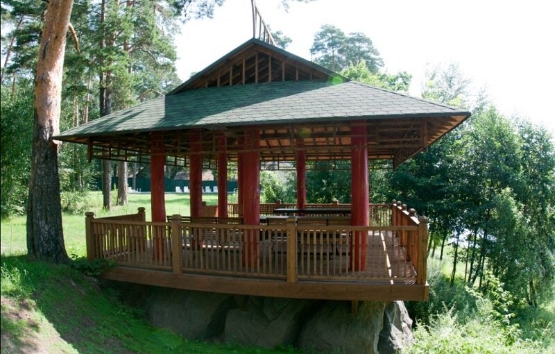 - Территория в лесу, чистый воздух, сосновый аромат.