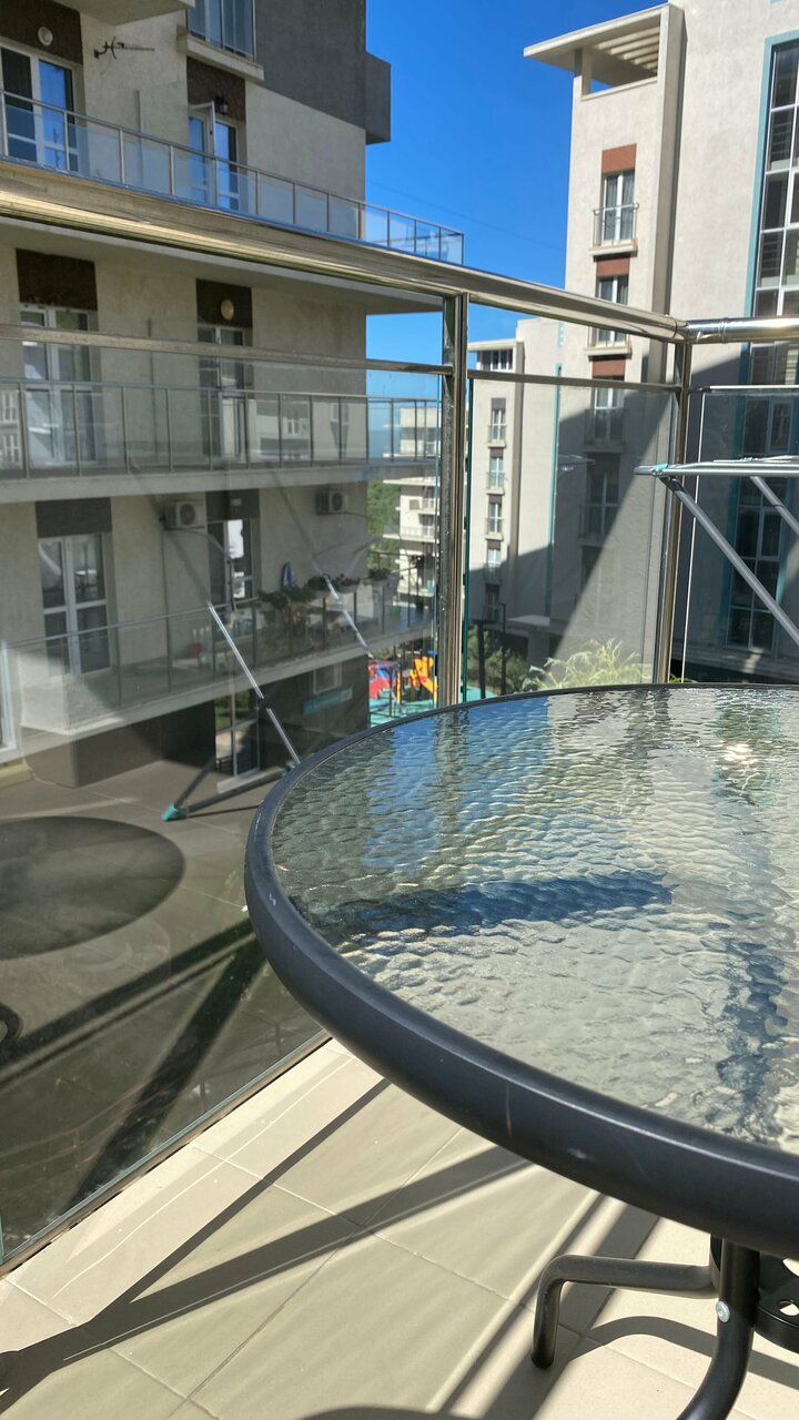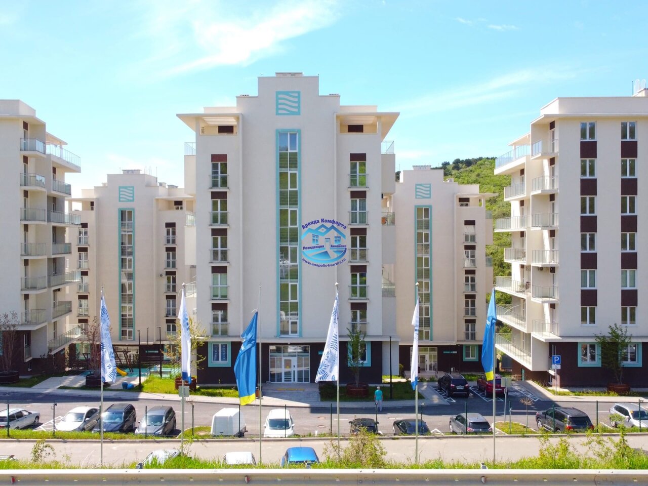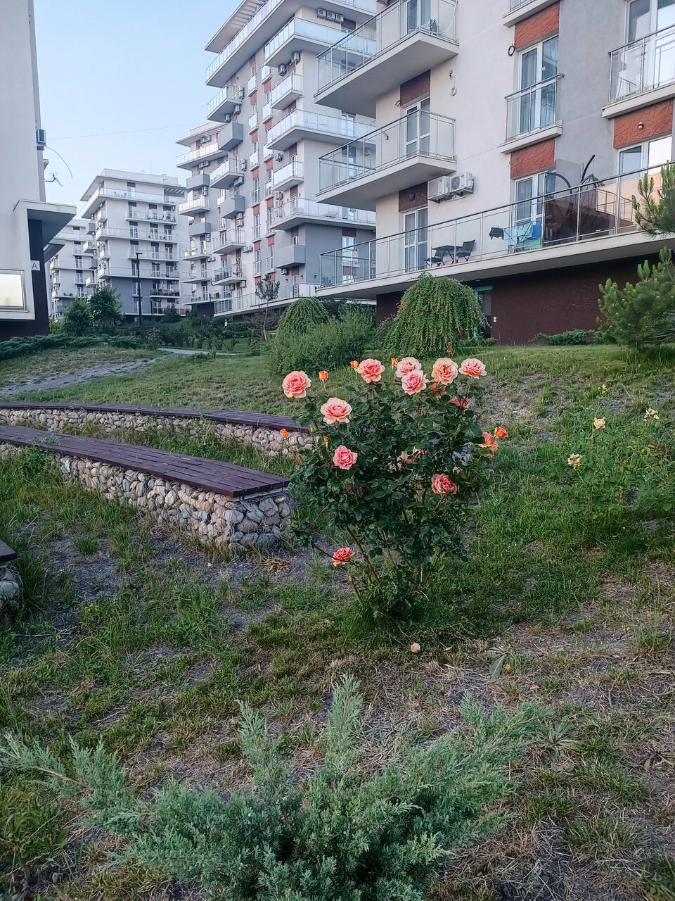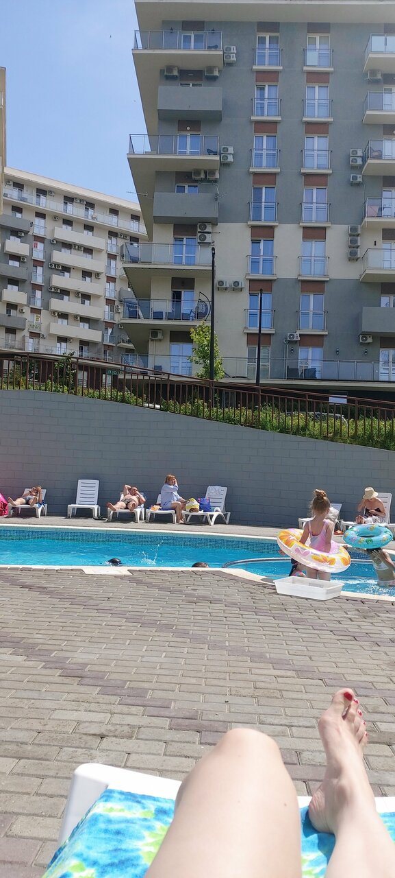 Много плюсов, но и минусы тоже есть. Магазин один на всю территорию, есть пекарня где вкусная и разнообразная выпечка. Есть ОДИН бассейн, в перспективе ОБЕЩАЮТ построить ещё один. Строются еще корпуса. Так что строительные звуки слышны. Парковки не хватает, а машин много. Всё тротуары заставоенны машинами. Так что до бизнес класса пока далеко. До моря 400м но на пляже много крупных камней, зайти сложно.