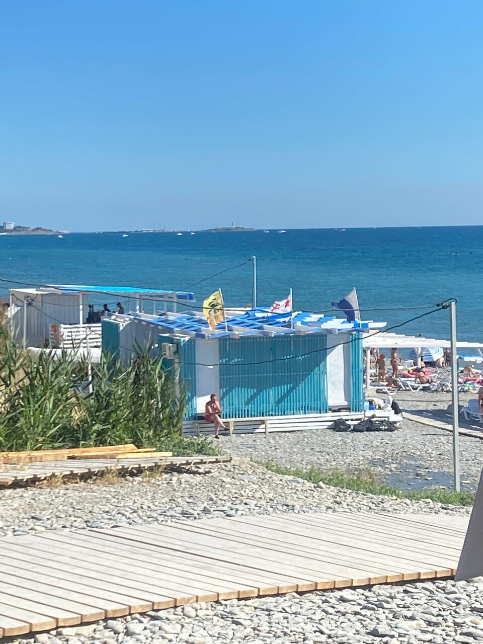 Отличное место. Отдыхаем сейчас 12.09.23. Погода + 24, вечером прохладнее. Море теплое и спокойное. Заход в море крупная галька и валуны, необходима спецобувь. На пляже есть навесы и лежаки (300руб) туалет и кафе. В самом ЖК 1 продуктовый магазин с ценами повыше чем в сетевых в городе и пекарня.