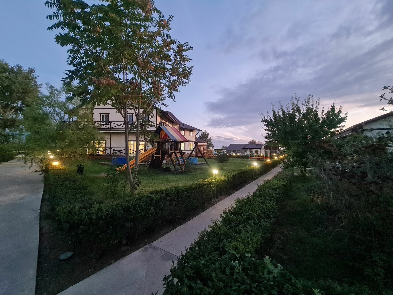 Отель предлагает комфортное проживание в номерах (от 4000 до 8000 ₽/ночь) с кондиционером, Wi-Fi, телевизором и санузлом. В инфраструктуре: открытый и сезонный бассейны, ресторан, кафе, бар, детская площадка, собственный песчаный пляж, парковка (бесплатно), конференц-зал и банкетные услуги.