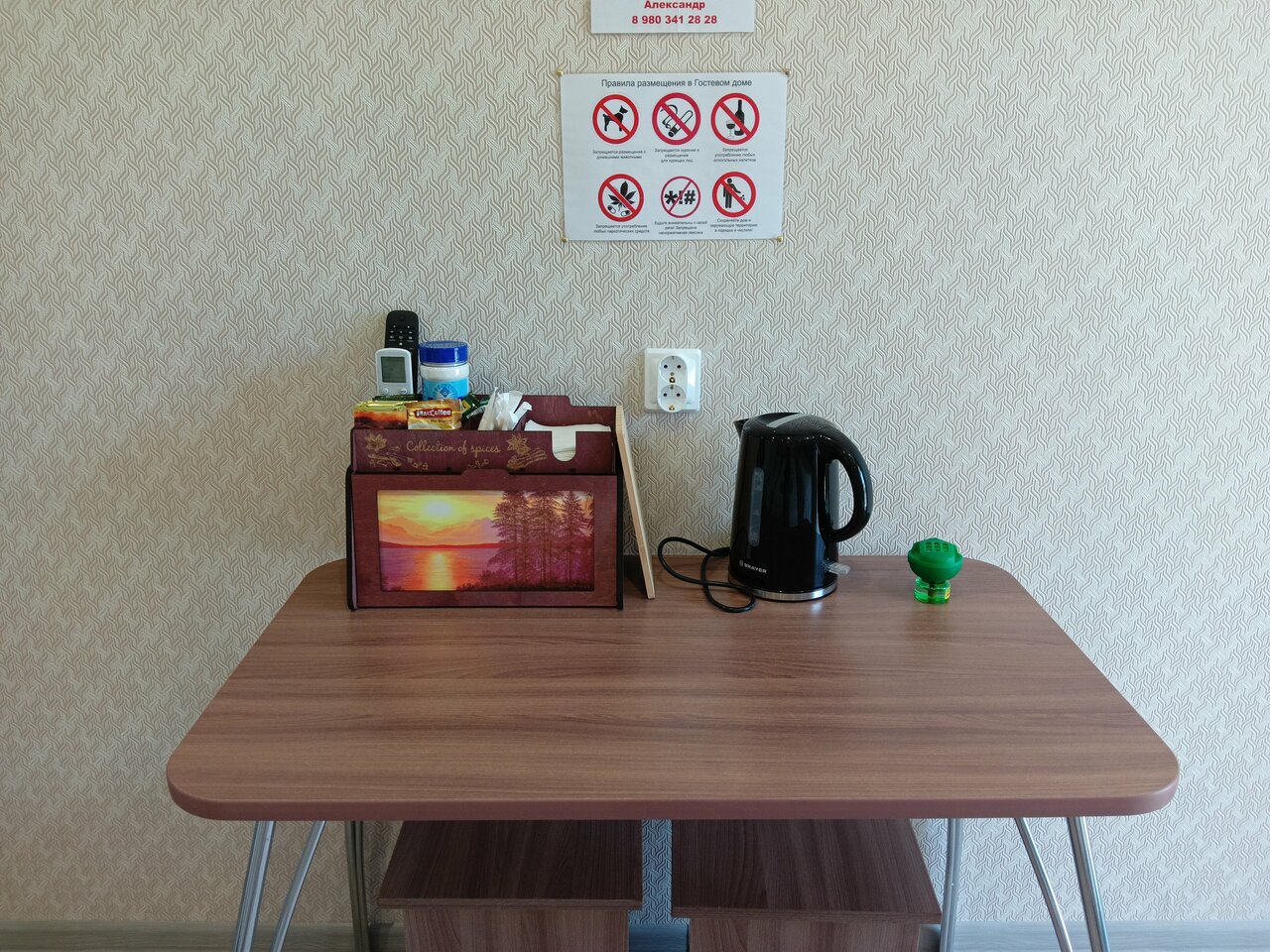 Рекомендую !!!!чай кофе в номере даже мед .все чисто и удобно. 1000 р сутки или ночь.как захотите
