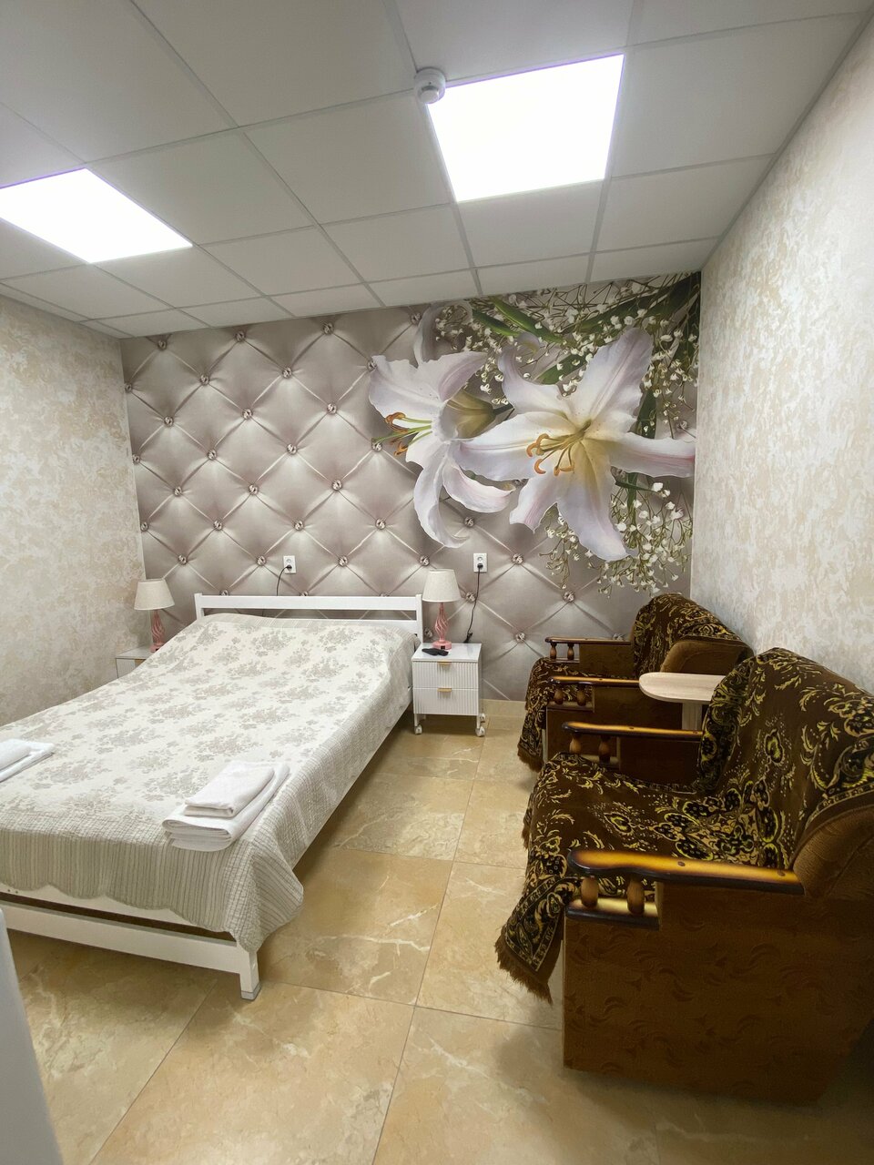 Стоимость проживания и информацию о наличии свободных номеров вы можете уточнить по телефону или на сайте гостиницы.4 основных места: 2 двухспальные кровати.