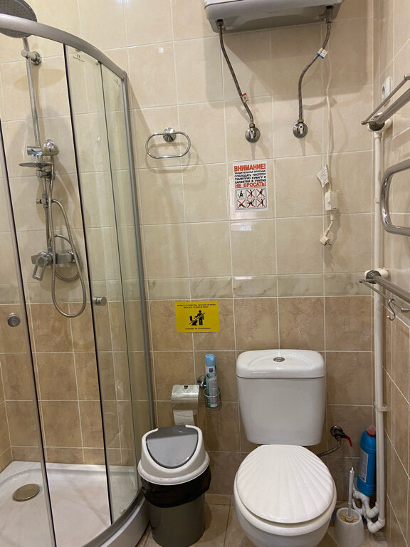 - Совместный душ и туалет на этаже (неудобно).