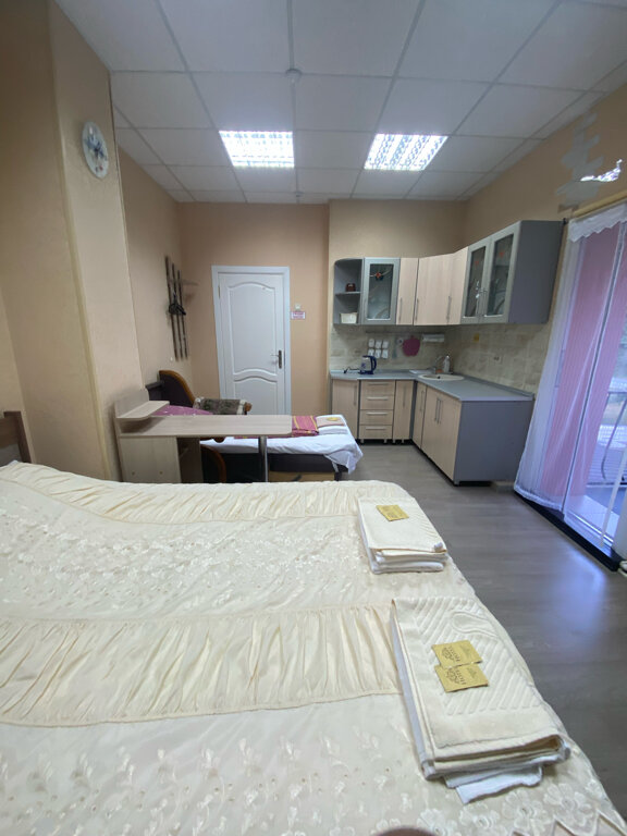 Очень удобное расположение на м4. Очень добродушные хозяева. Хозяева не находятся в отеле, но мы позвонили предварительно, нас встретили вовремя, ждать не пришлось. Все чистенько, опрятно. В номере большая двухспальная кровать с белым наглаженным постельным бельем, двухъярусная кровать для деток, телевизор, и очень тепло. В холе миникухня со всем необходимым. Туалет с душем общий на несколько номеров, все чисто и опрятно, полотенца, тапочки, мыло, шампунь все есть. Вообщем рекомендую, отдохнули как дома. Спасибо.