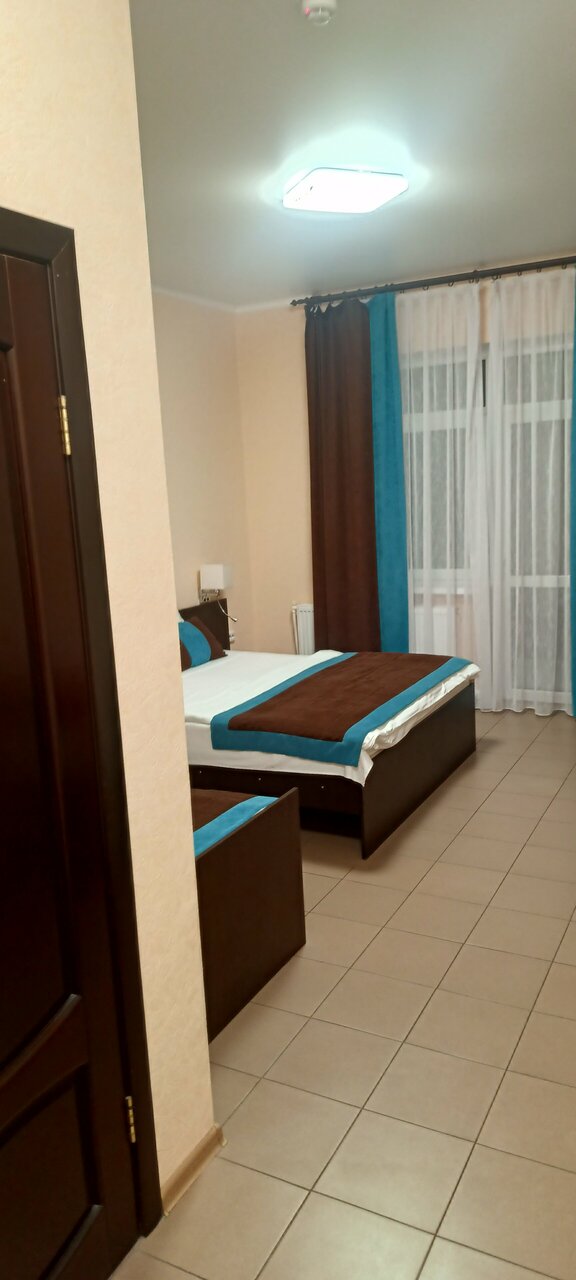 Останавливались в этой гостинице транзитом по дороге два раза в этом году. Очень удобное расположение. Гостиница находится рядом с трассой. Комфортные номера. Мы снимали на третьем этаже. Кровати удобные, белье белое и приятно пахнет. Пушистые полотенца. Предоставляются одноразовые тапочки, шампунь и мыльца. На первом этаже что то вроде столовой. Есть посуда, микроволновка, чайник. Можно перекусить. В холодильник можно положить продукты. Единственный недостаток, что шумновато. Особенно по утрам.