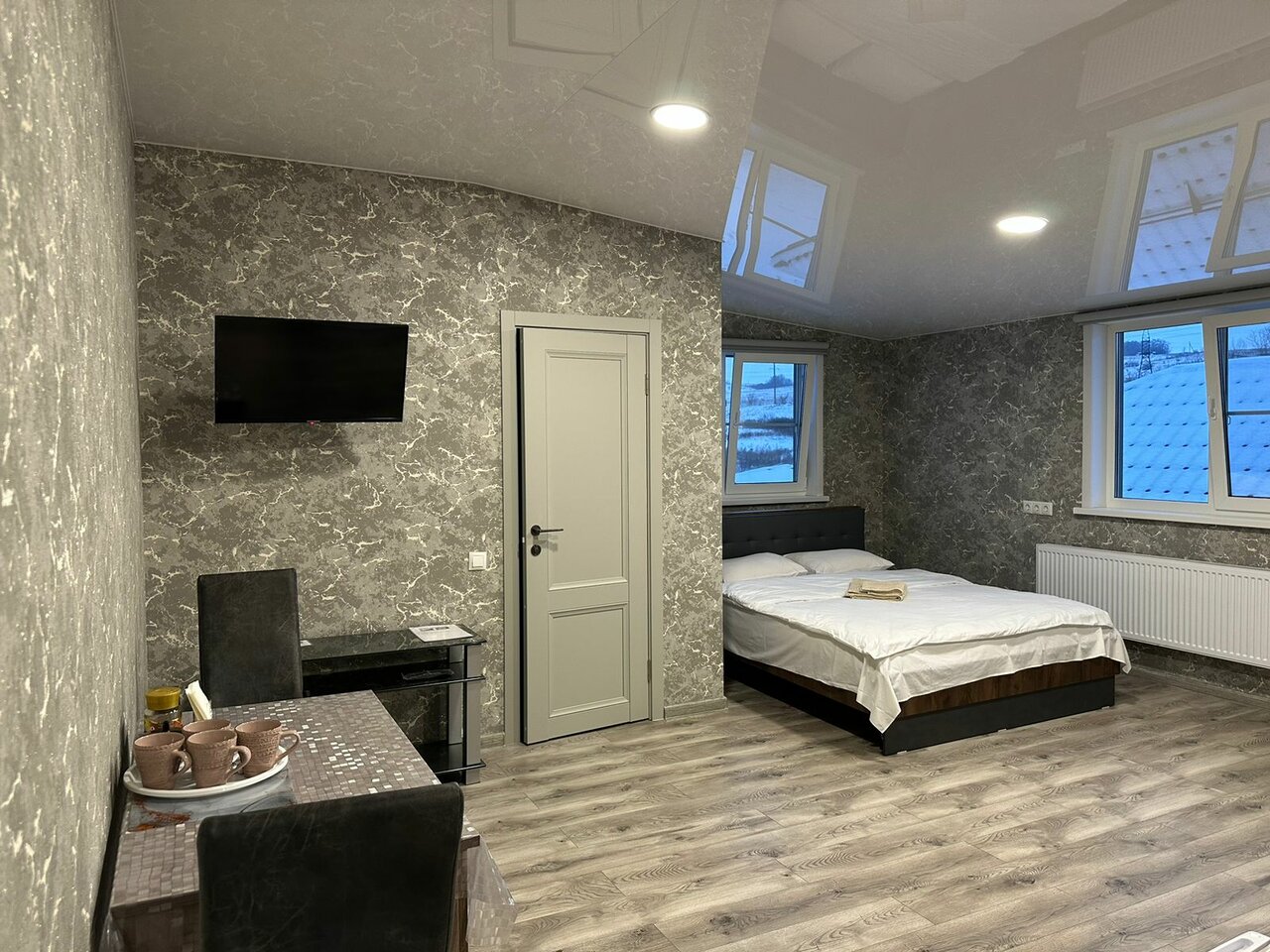 Цена от 3500 до 4900 34 кв.м. 1 эт, 2 бол двухсп кровати .Отдельный вход, своя парковка, территория двора. Раздельный санузел, потолки 3м, так же есть мини завтраки и ужины. Свободно можно разместиться пятером.