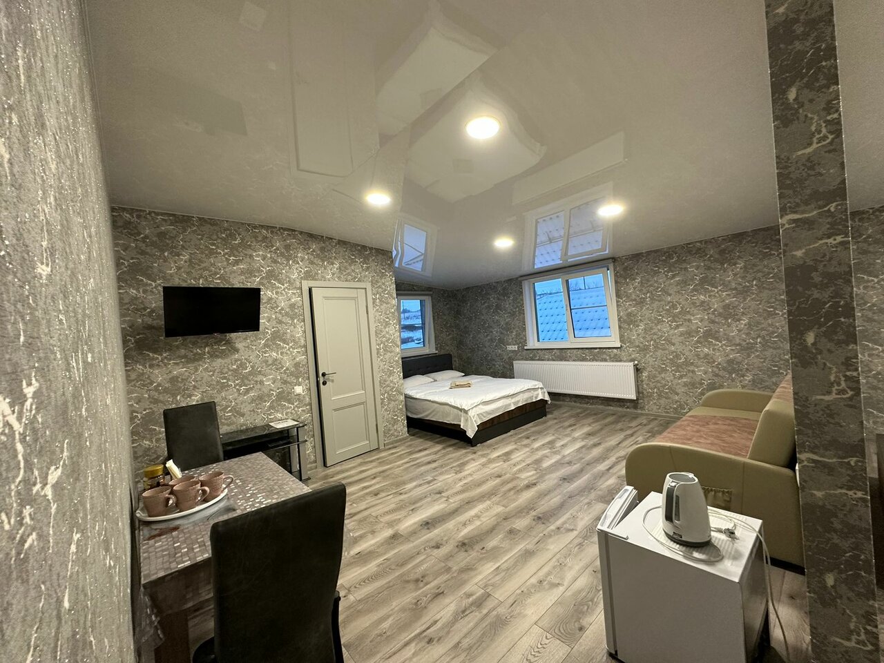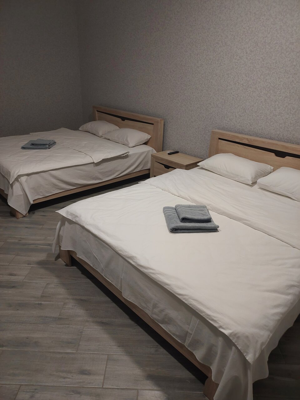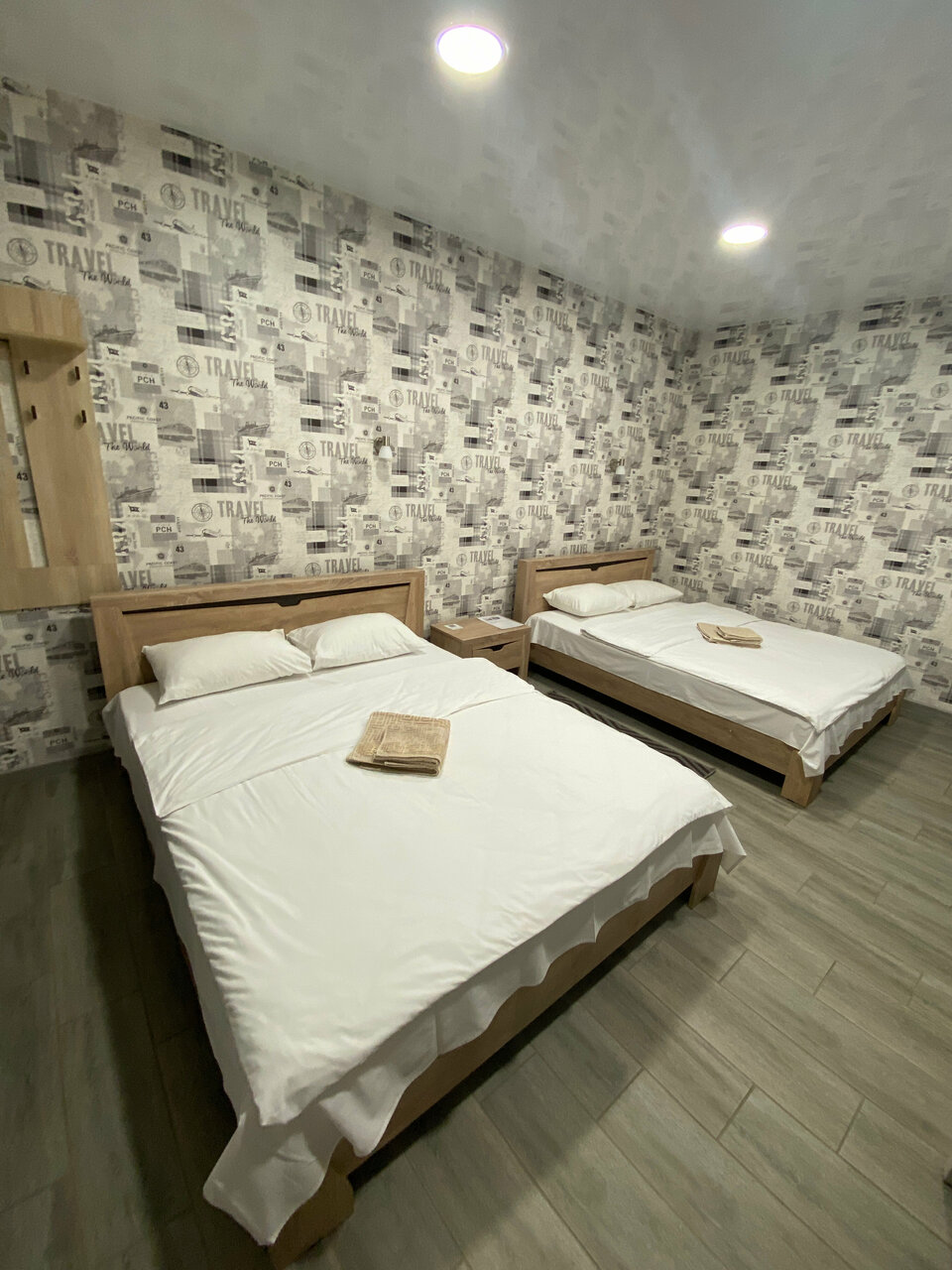 Отличная гостиница.Все чисто,две большие кровати в номере,свежий ремонт,санузел идеальный,холодильник,сплит,чайник и вазочка с конфетами.Вернемся вновь!