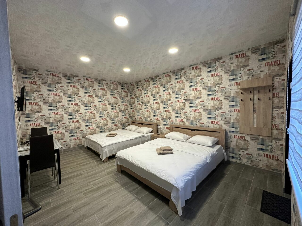 Цена от 2500 до 2900, 25м2, 1 этаж 2 двухсп. кровати холодильник . Вид во внутренний двор, Собственная ванная комната, Телевизор SmartTV, Кондиционер, Отопление, Wi-Fi, Бесплатная парковка.