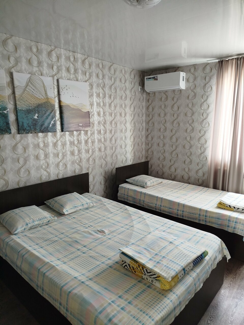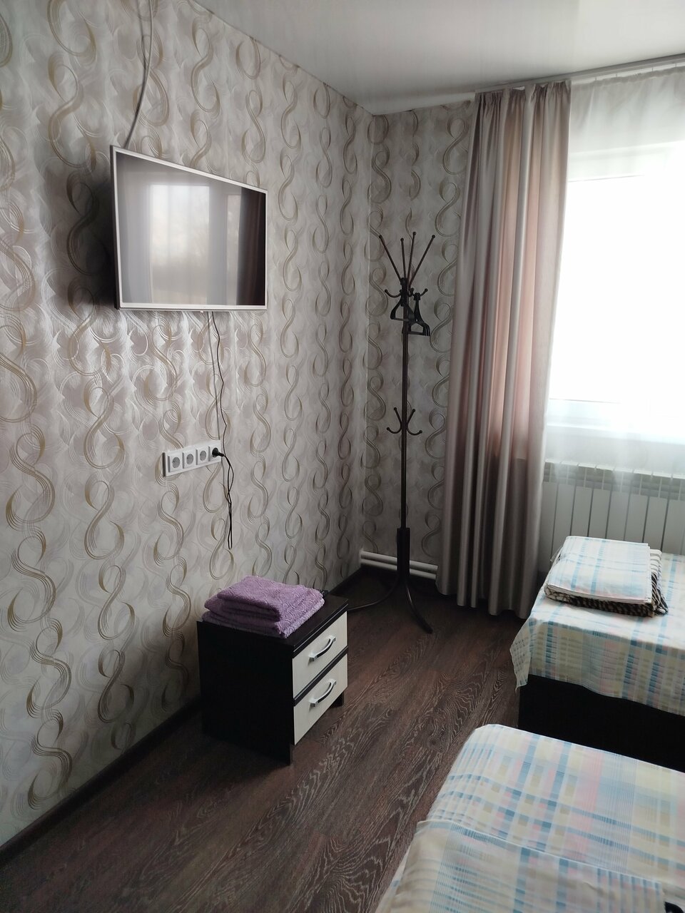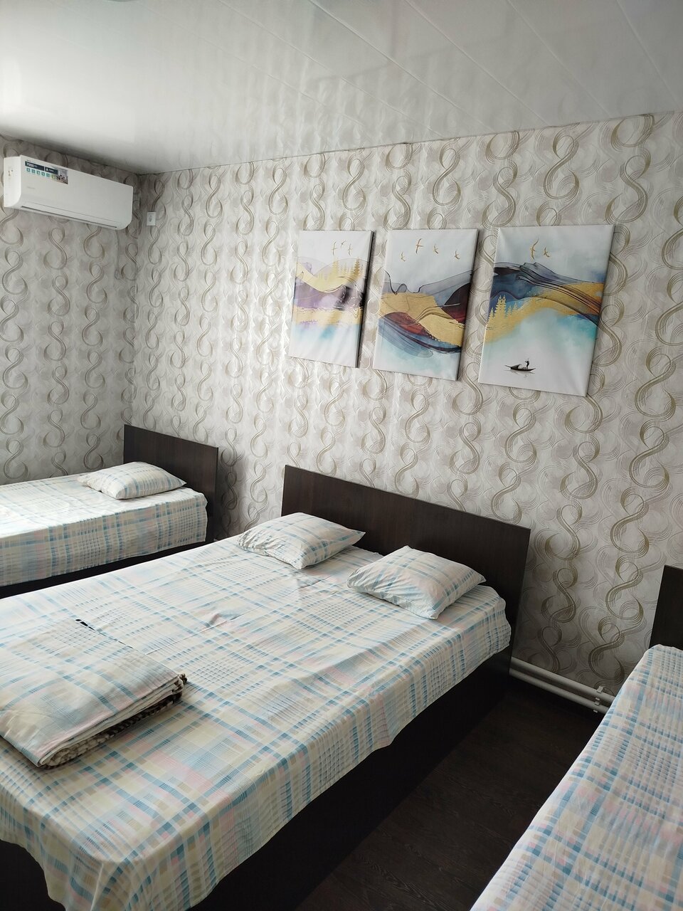 Выбирали место для ночёвки в дороге наспех, через яндекс карты, в течение десяти минут.. По телефону на все вопросы спокойно ответил мужчина, всё по-честному и без всяких понтов. У нас был номер эконом на трёх человек. Туалет — душ на четыре номера, кажется. Но заторов, вопреки нашим опасениям, там не было. Больше всего понравились матрасы на кроватях и небольшие, но какие-то очень удобные подушки. Ну ещё довольно уютная общая кухня на веранде с телеком, где особо никого и не было. Хозяин очень скромно-приветливый и что для нас самое главное, ненавязчивый. Комната небольшая, но всё очень чисто и новое. Короче, неприятных глазу моментов не замечено. p. s. Ненавижу газовые колонки!