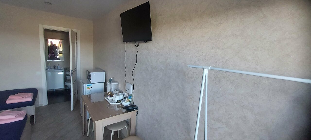 Великолепный комплекс! Оборудование номеров выше всех ожиданий! Есть всё необходимое как для ночлега так и более длительного отдыха. Кондиционер, холодильник, микроволновка,телевизор, отличный WiFi, чайник. Сантехника и комплектация ванной комнаты на уровне 5*. Чисто, уютно, тепло, тихо. Рекомендую !