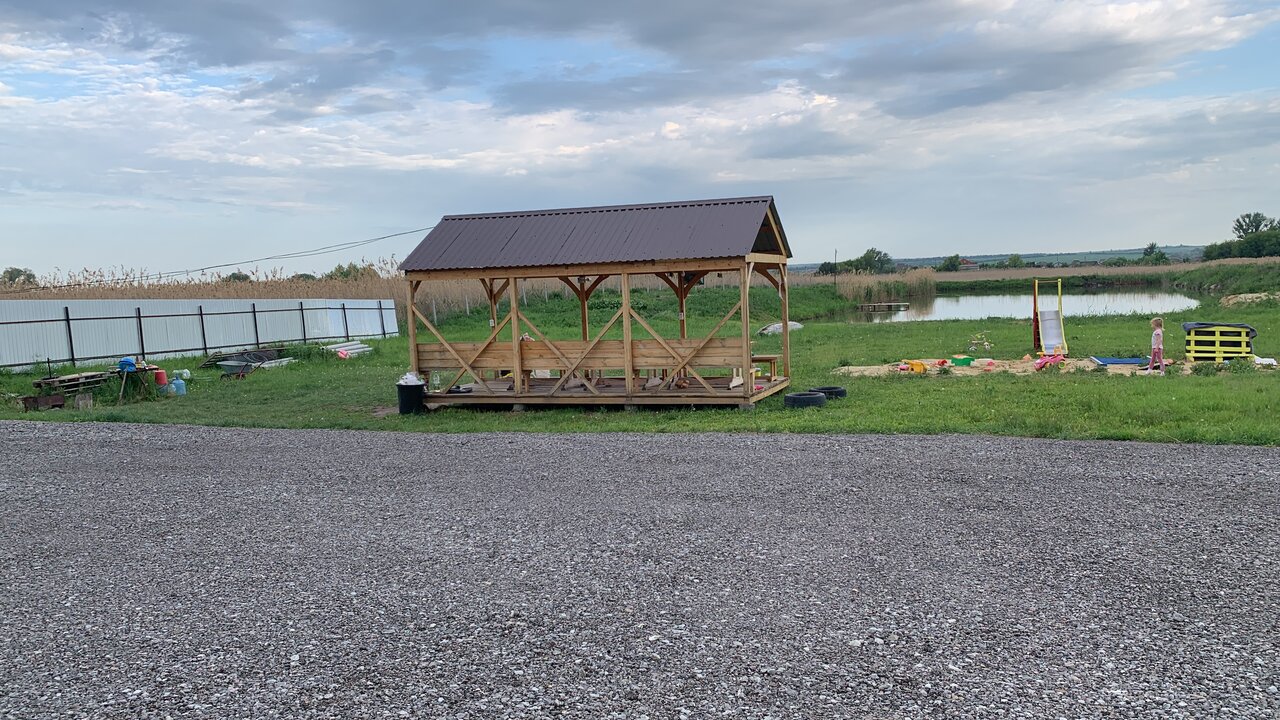 Домик хороший и уютный, есть одноразовые щётки, тапки, гель для душа и шампунь. Также во дворе есть небольшая детская площадка, беседка и качели. В пруду можно купаться, а также там обитает рыба. Хорошие хозяева. Хороший выбор ночлега. Утром красота. Всем советую
