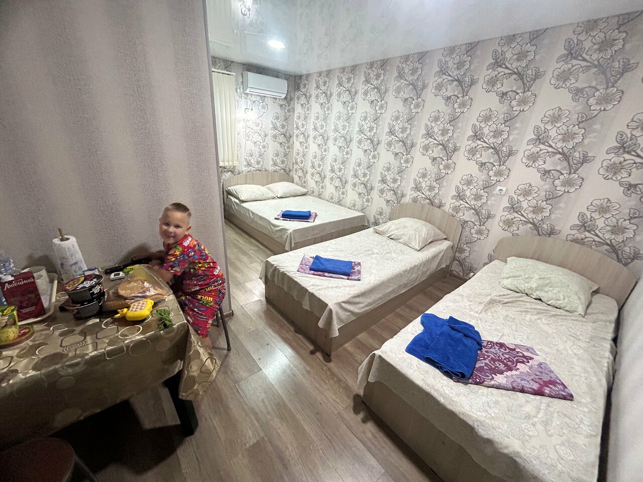 Ночевали в июле 2024 с мамой инвалидом в 3-х местном номере. Было все ок. Авто под окнами. В номере свой бойлер, эл.чайник, кондей, сетка на окне, чистейшее белье и полотенца. Все чистенько. Была посуда на троих (чашки, ложки, пиалушку) и даже 3 пакетика каши с фруктами и вазочка с вкусным печеньем! Хозяева — милые люди! Надежда при нашем выезде подарила горшочек с фиалкой. Она у нас дома начала цвести розовыми цветочками )) Замечательно отеле название -‘Как дома’! Реально побывали у ‘родственников’. На след.год планируем ночёвку и туда и обратно у них.