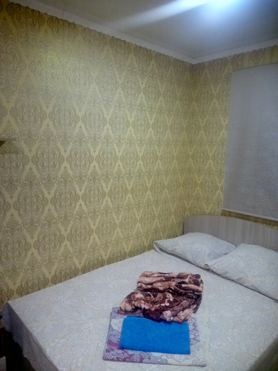 Приехали поздно вечером, утроила цена и качество!) нам нужно было просто переночевать и утром рано ехать дальше! Все чистенькое, в номере был чайник и холодильник, посуда, чай,кофе, каша и сахар! Душ и туалет в номере! Так же кондиционер и телевизор. есть вай фай!) Добрая и приятная хозяйка!)