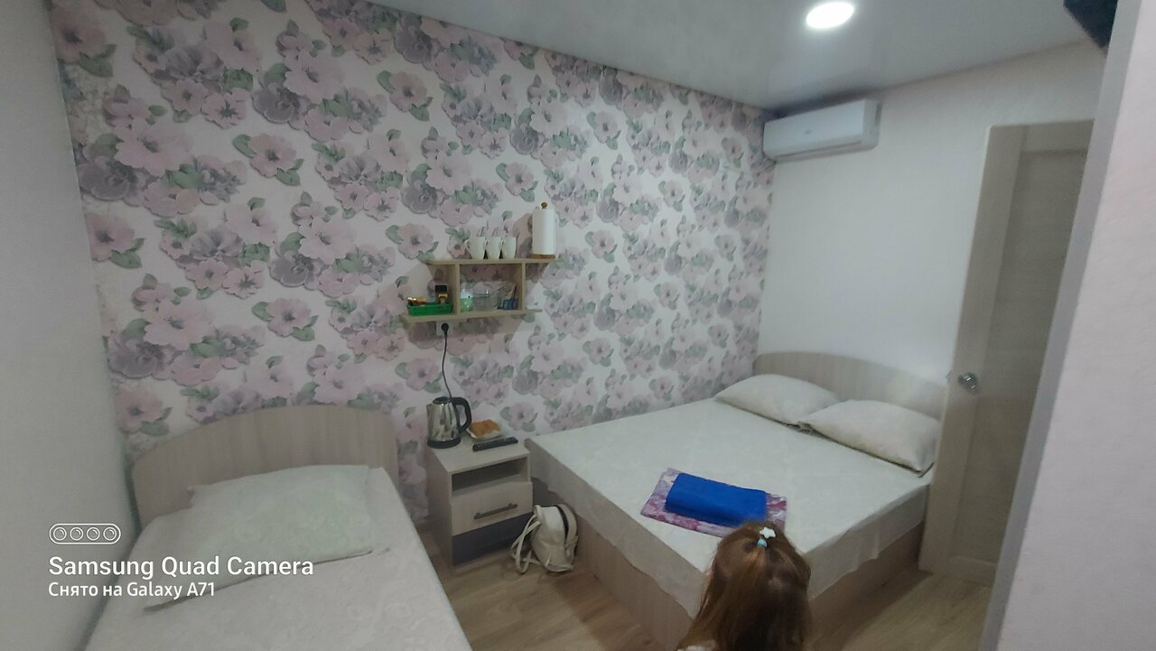 Очень радушный прием, гостеприимные хозяева, уютное пространство, свежий ремонт и обстановка; встретили в позднее время; машину можно поставить во дворе; семье можно разместиться втроем в одном номере, это удобно; очень чисто! Предложили воспользоваться холодильником, что может быть важно для путешествующих на автомобиле; после долгой дороги очень кстати пришелся чайный набор с печеньем) В порядке пожелания можно было бы в ванной попробовать прикрепить крючочки для полотенец, и вешалку или полочку для вещей в комнате, но это мелочи, которые впечатления не портят. Возможно, был бы кстати вентилятор для номера без кондиционера. Прекрасный мини-отель для остановки по дороге на море или обратно, хорошее соотношение цены и качества.