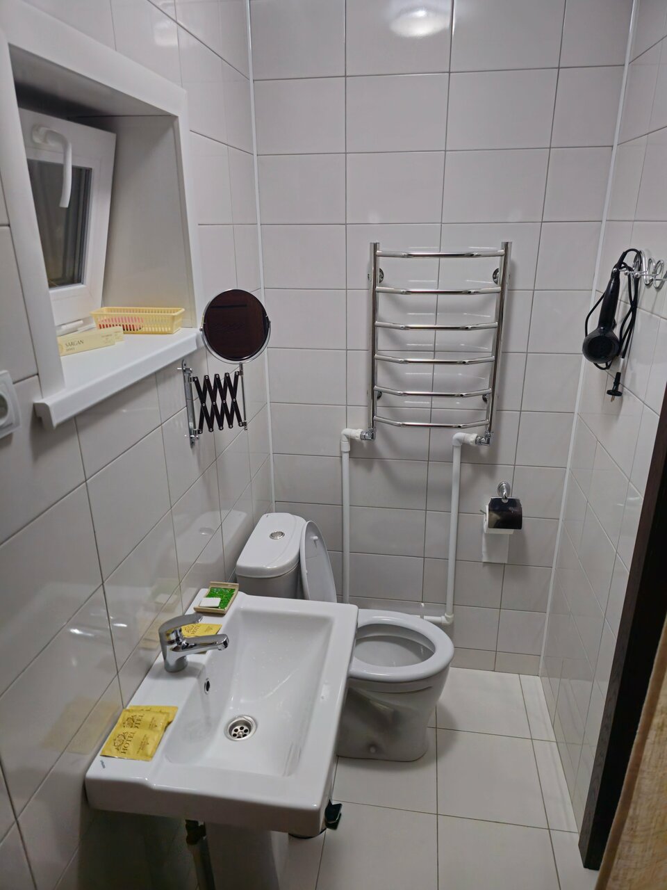 Отличное место! Чисто, приятно! Внимание в мелочах — наличие в индивидуальной упаковке щетки, пасты, шампуня, геля! Комплект полотенец качественных. Даже есть баня, но на нее большой спрос! Забыли термос в номере, нам его выслали сдэком. 🙂