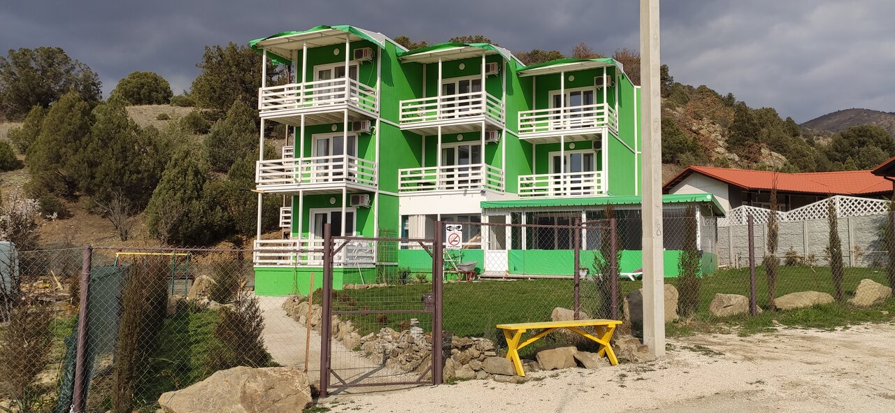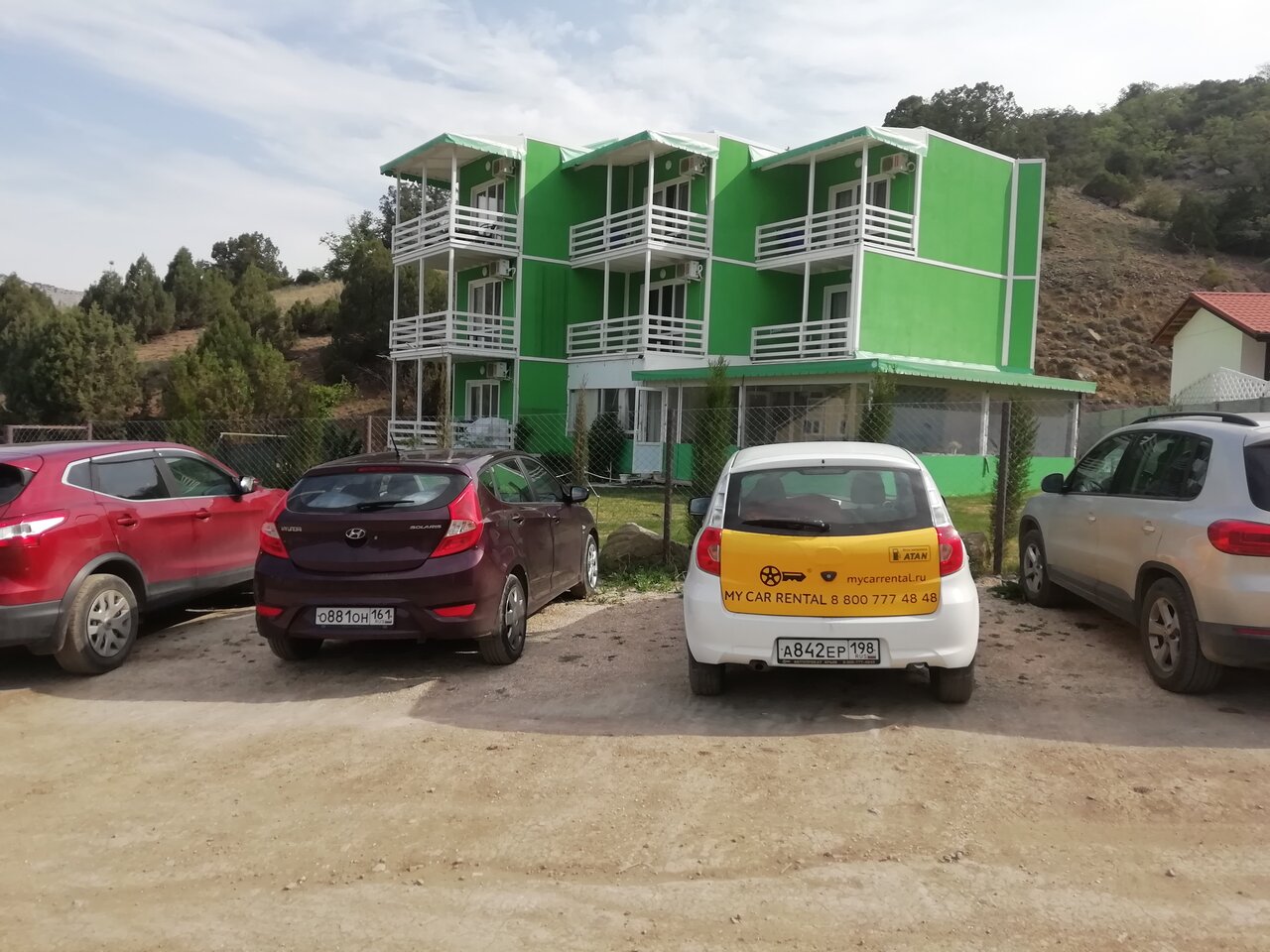 Аккуратная маленькая гостиница, с доступом к не сильно забитому пляжу. Просторная общая кухня, где можно приготовить еду, постирать вещи. На своём болконе или на веранде у кухни можно завтракать и тп. Чайник есть в номере, воду питьевую, продукты стоит привезти с собой. До супермаркетов или рынка ехать на машине в новый свет. До моря есть сельская дорога вдоль виноградников — пешком минут 15 или на машине 5мин. От моря есть две горные тропы в горы — полегче до языка тролля и сложная до царского пляжа (нужна соотв. обувь и там и там, сам царский пляж набит людьми и катерами-такси, но тропа красивая). На машине можно съездить в генуэзкую крепость в судак. Огромная крепость — можно гулять пару часов+, снаружи много кафе и магазинчиков, есть платная парковка. На море простенькие курортные кафе. Рестораны в судаке и в новом свете — на машине. Из нового света можно вернуться на пляж на катере (их много, работают как такси).