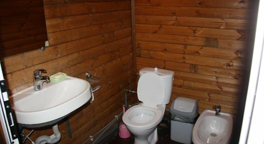 Жили в домике, домик нормальный, две двуспальные кровати, тв, холодильник, санузел.. Все норм))) единственное — скрипящая душевая кабина и полохо утекающая вода в ней… Все остальное норм))