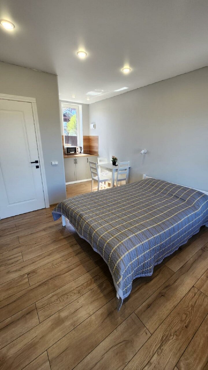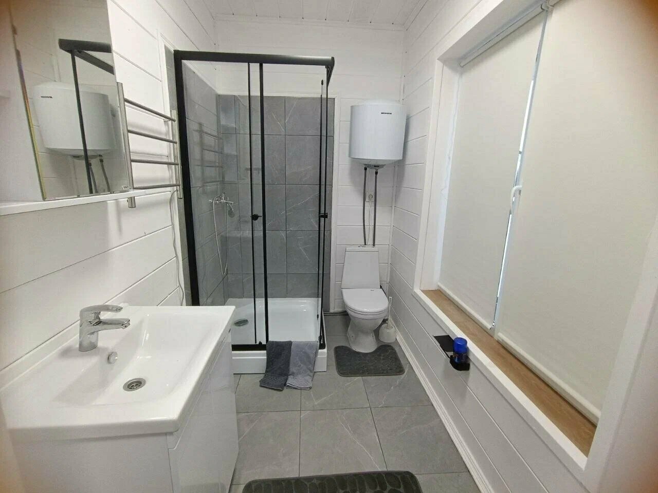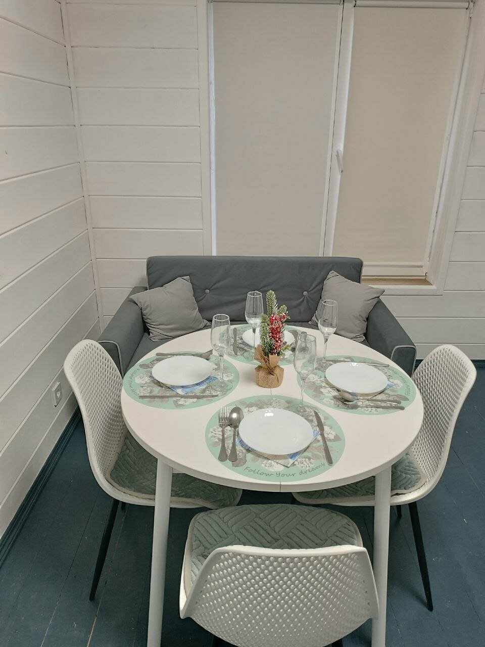 Приехали семьей на 1 день! И обязательно вернемся Домик классный, чистый , все -новое, панорамные окна, прекрасная зеленая территория , никто не шумел,.Отдельная любовь-терраса с шезлонгами и плетеными креслами.1 день работала на удаленке, интернет и вайфай отлично работали .Хозяева прекрасный и заботливые к своим посетителям люди.