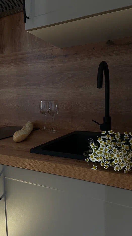 - Полностью оборудованная кухня (посуда, столовые приборы, техника).