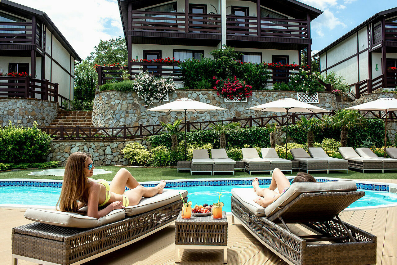- Уютные и продуманные номера (включая двухэтажные, кухню, два санузла, террасу, видовой балкон).