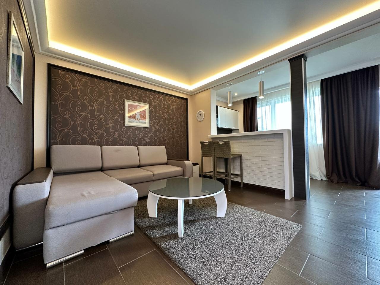 Трехкомнатный люкс площадью 75 кв.м подойдет для самых требовательных гостей. Продуманный до мелочей интерьер в стиле Арт-Деко, просторная гостиная с панорамными окнами и две уютных спальни сделают отдых большой семьи комфортным и беззаботным.
