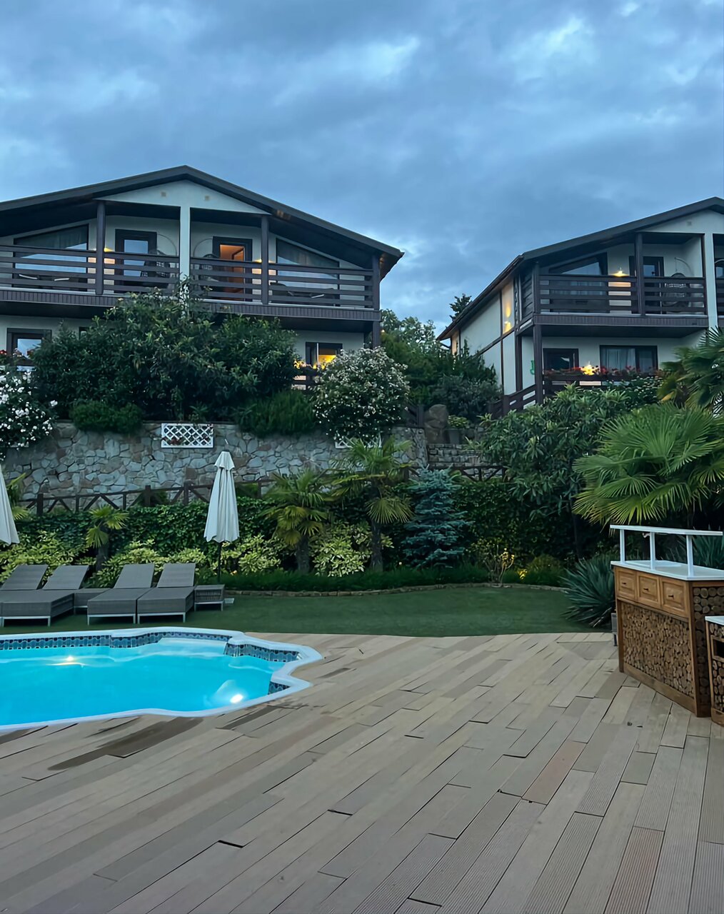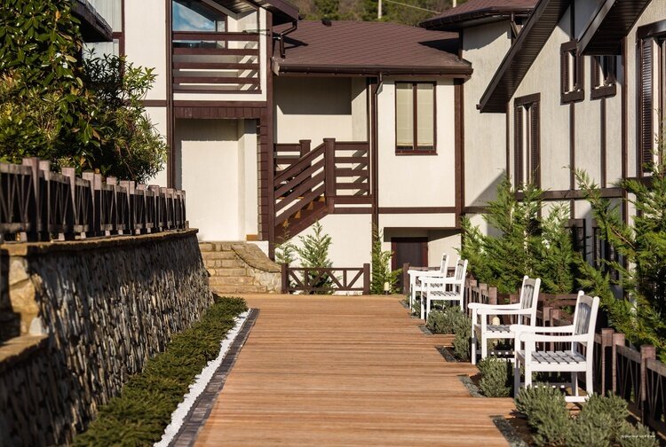 Здесь прошёл наш супер отпуск с друзьями! Приветливый персонал, очень хорошие дома — все качественно и стильно! И очень уютно в отеле — хоть территория и небольшая, но очень зелёная!