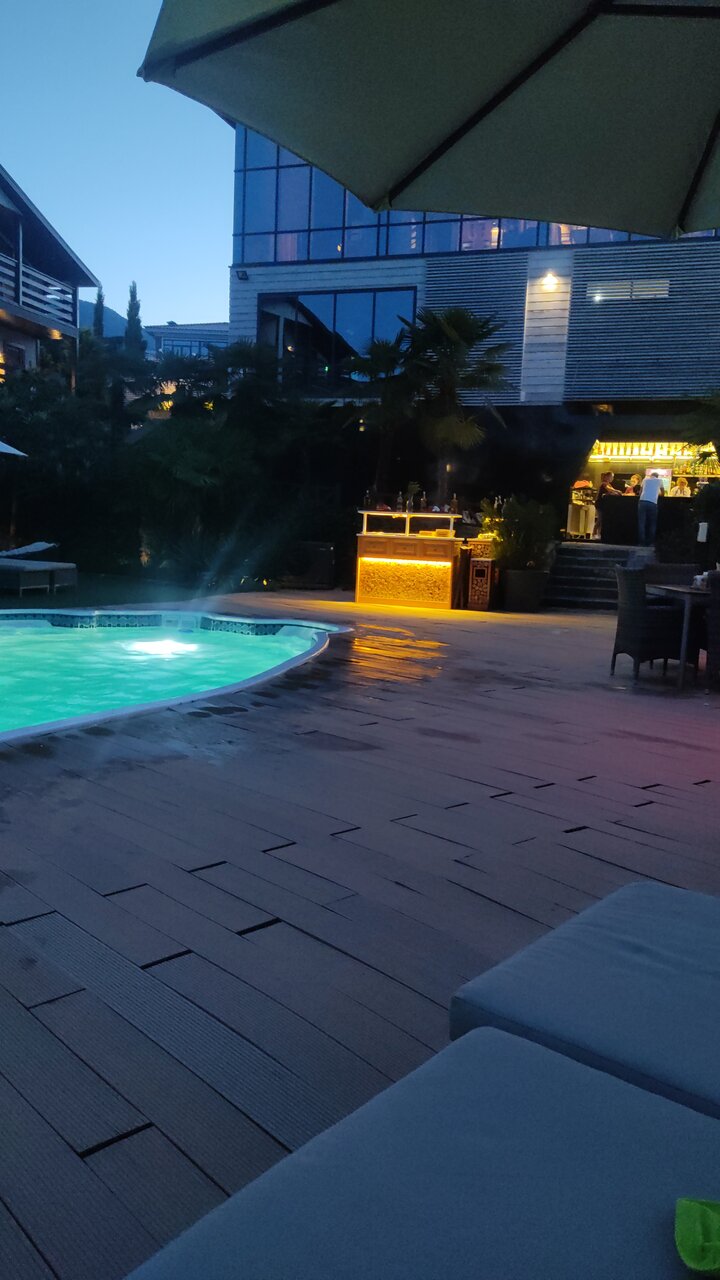 Красивое место с бассейном, рестораном! Вид шикарный! Качественная и красивая подача блюд, ценник немного кусается, но оно того стоит.