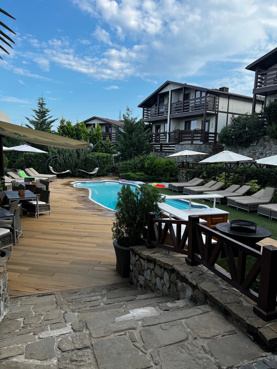 Очень понравилось это место. Красивая, ухоженная территория, чистые, уютные номера, прекрасный персонал и обслуживание. СПА-просто блаженство))) Сауна с панорамным видом на горы, хамам с сеном, вообще, любовь. Единственное, чуть маловат бассейн. Хотелось поплавать, но он больше, как джаккузи, хорошо так разминает, особенно приятно по ногам)))