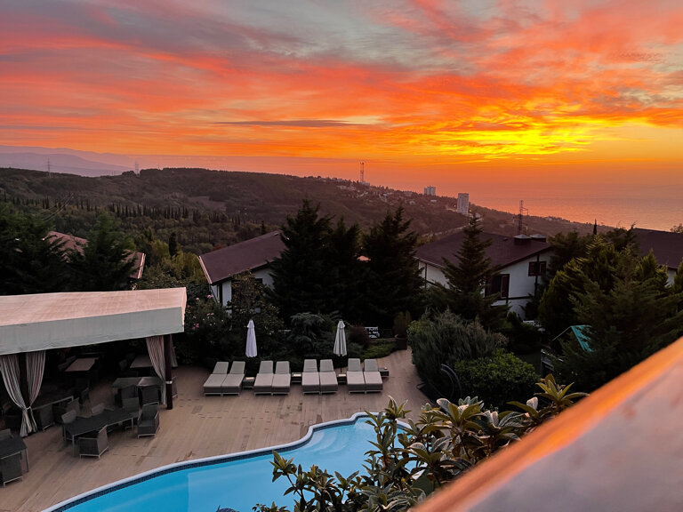 Провели три чудесных дня. Оснащение и подготовка номера на 5! Очевидно, что политика отеля — максимально угодить гостям, к сожалению не без промахов со стороны персонала (в частности ресторана), но в целом все на уровне , можно рекомендовать к посещению, мы не пожалели, хоть сами из Крыма и цена немного кусалась. Свою работу очень любит официант с сережкой в ухе (к сожалению не запомнила имя) и подносчик багажа — Профессионалы с большой буквы. Нам также повезло встретить шикарный рассвет , оставляем фото тут.